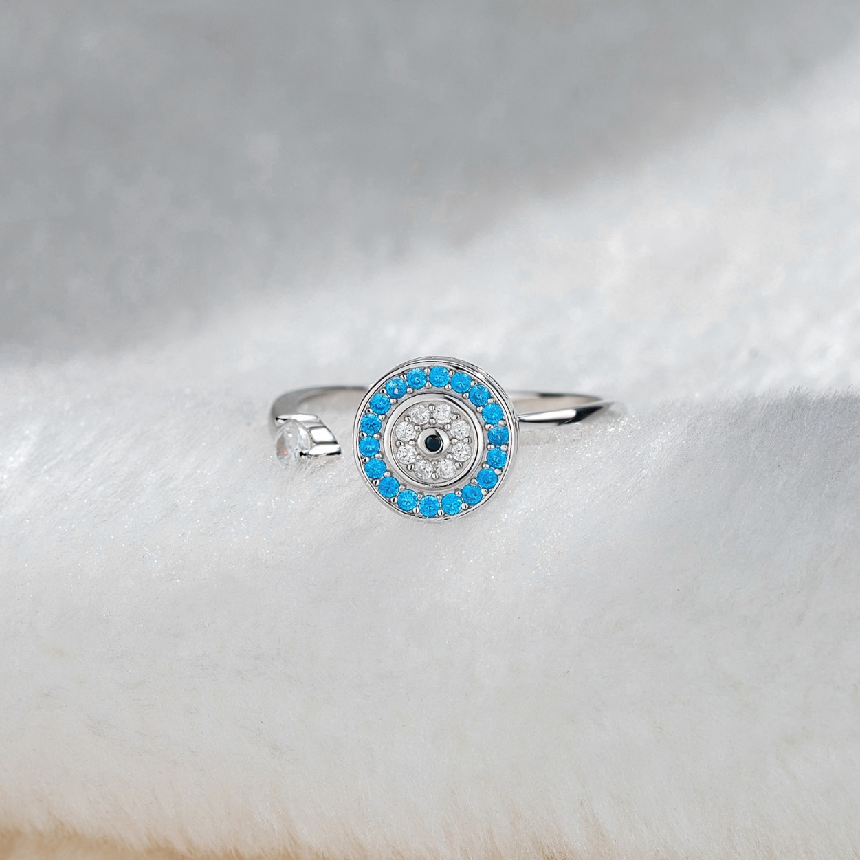 S925 sterling silver cross-border Amazon supply evil magic eye ring rotation rotation anti-anxiety decompression open ring