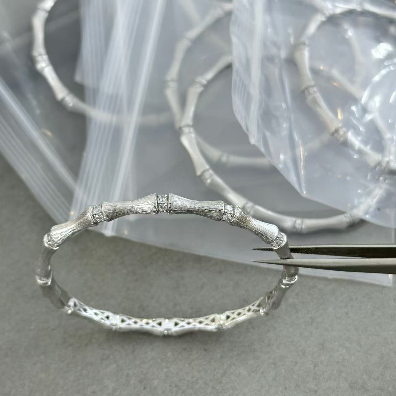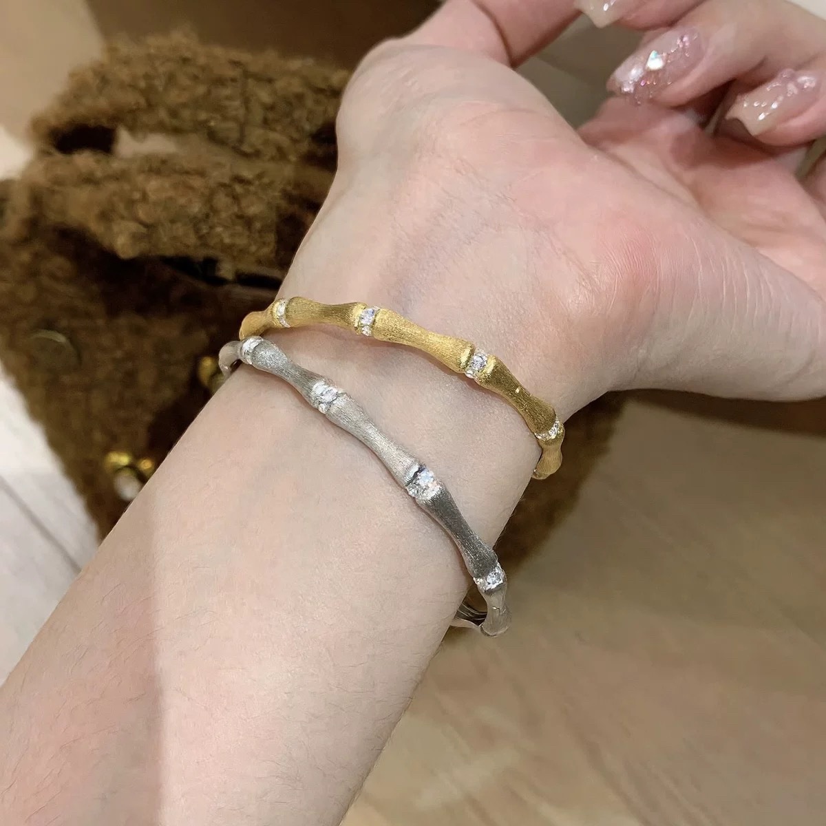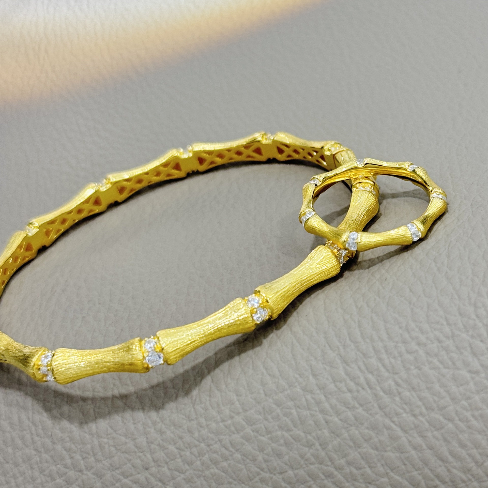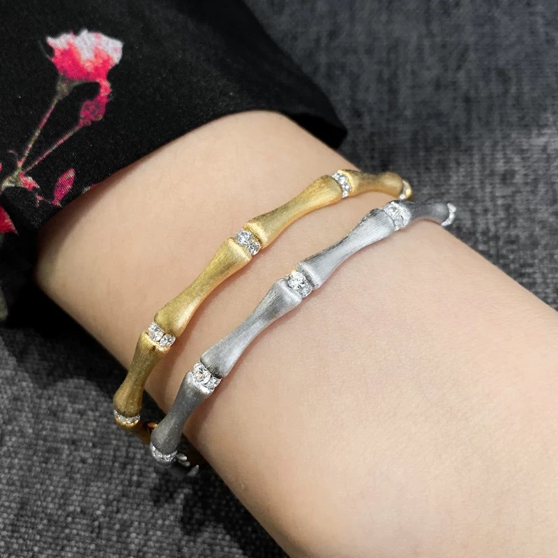 Sterling Silver S925 Retro Brushed Bamboo Bracelet Ring suit Guofeng Retro Exquisite Light Luxury High-end Seiko