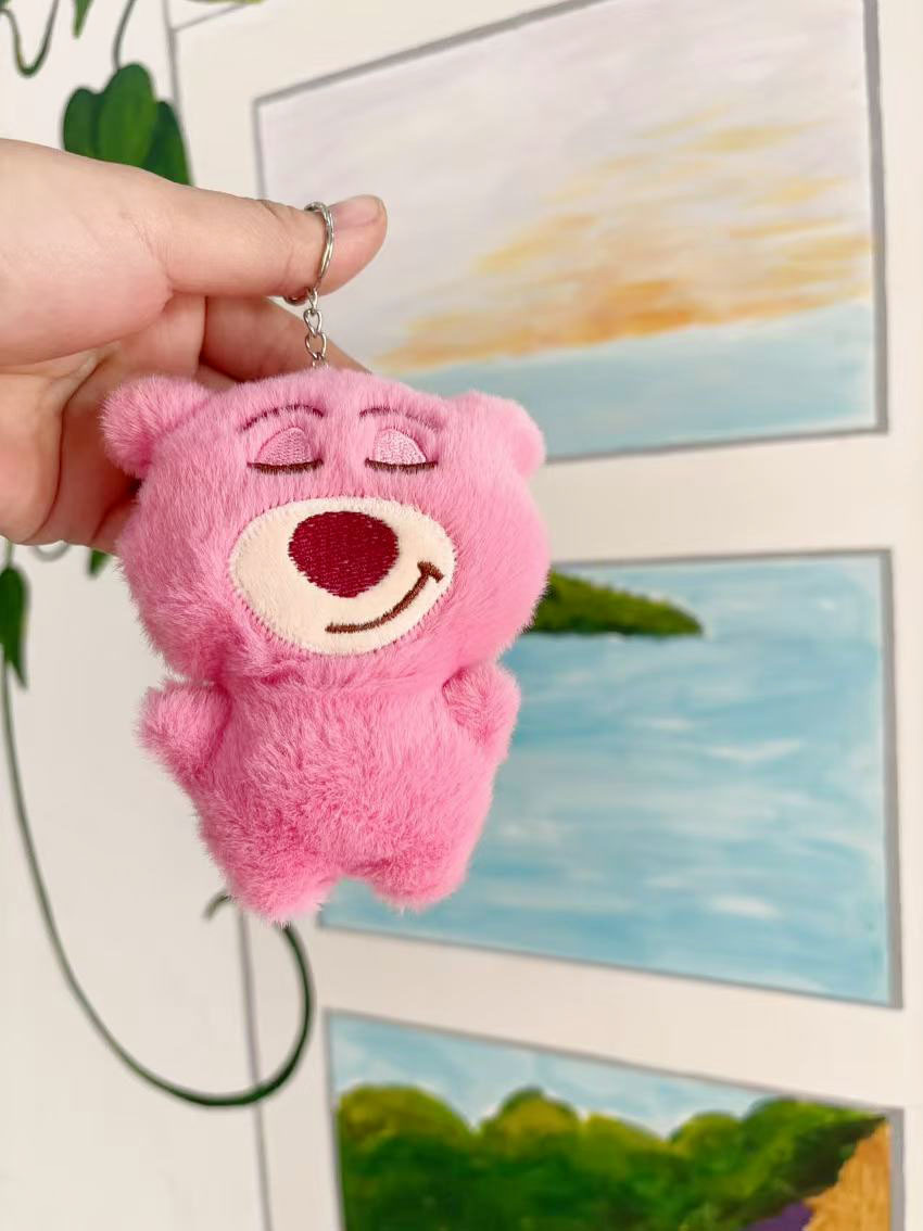 Plush Toy Strawberry Lying Bear Cartoon Dolly Bag Pendant Car Bag Pendant Keychain Small Ornaments