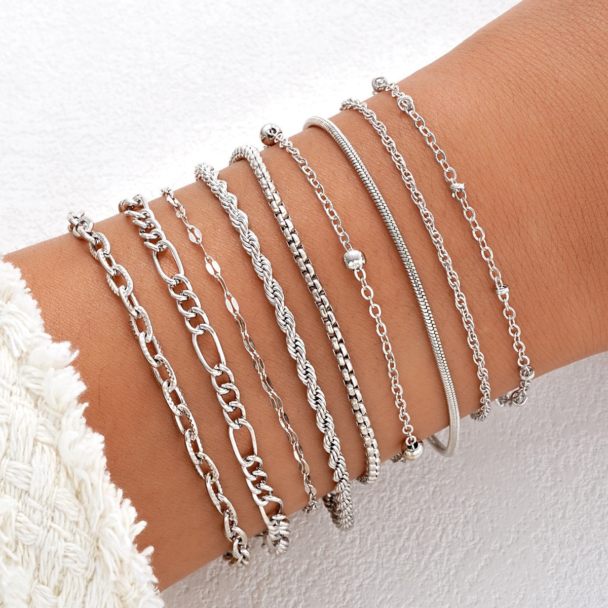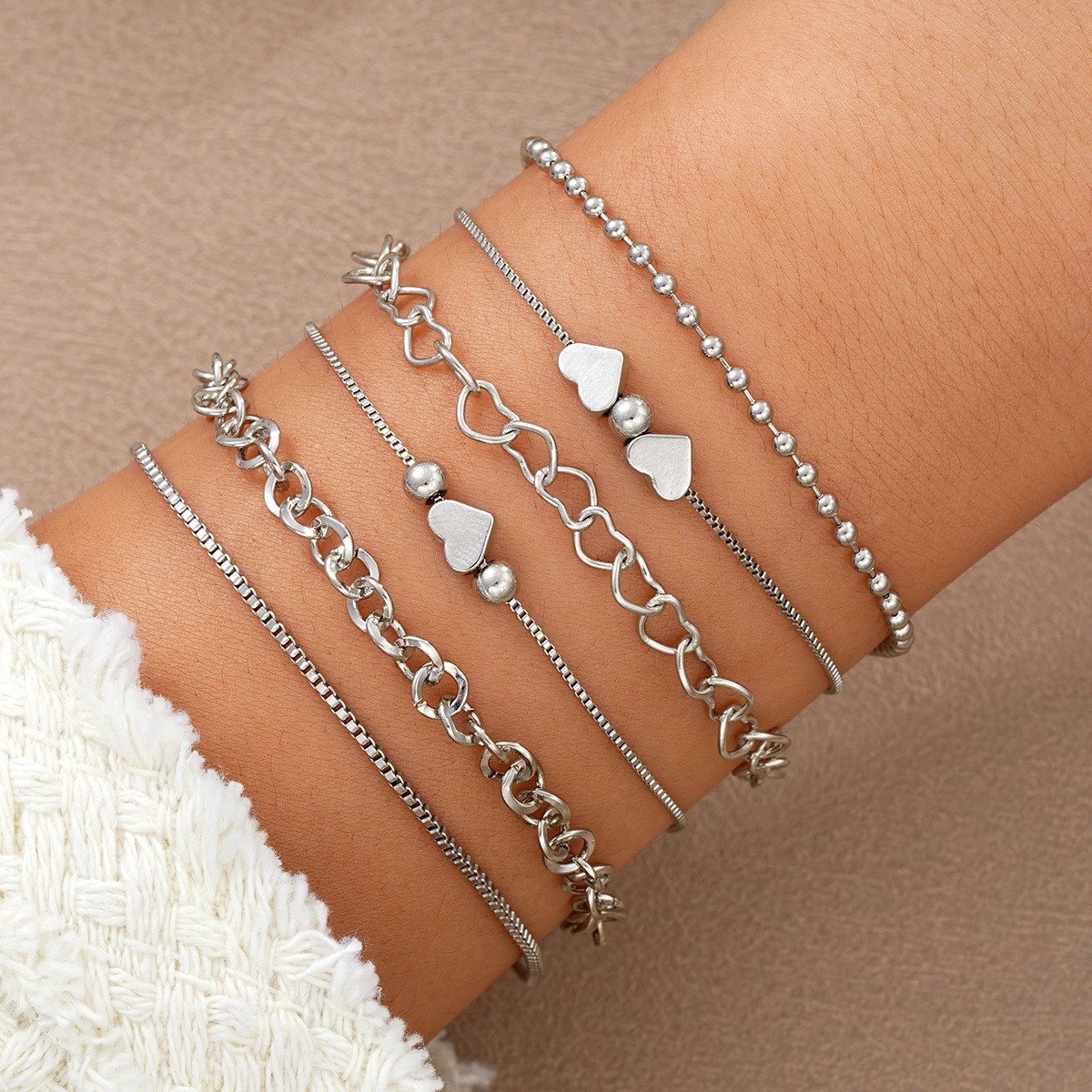 Cross-border Hot Selling European and American Style Love Round Bead Twist Chain Bracelet suit 11-piece Set Fashionable Simple Multi-layer Jewelry