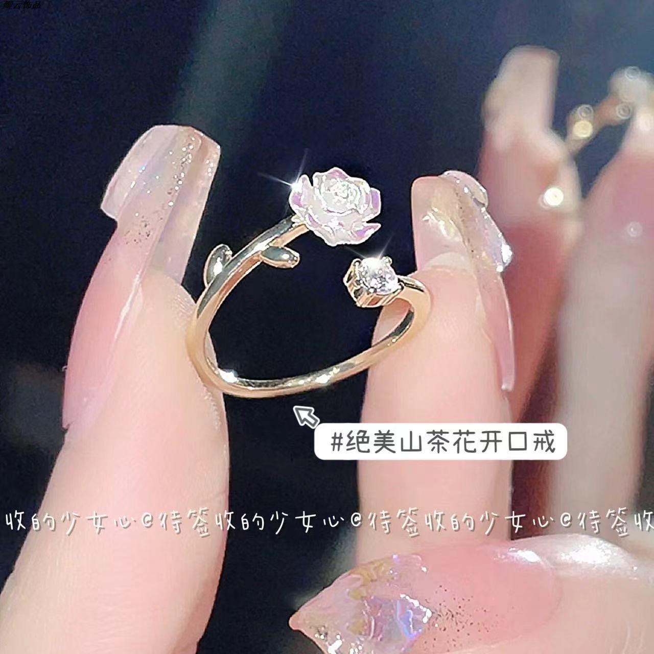 Niche Design Camellia Ring for Women Korean New Butterfly Accessible Luxury Adjustable Design Open Index Finger Ring