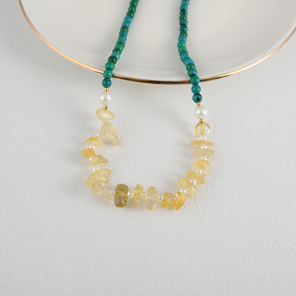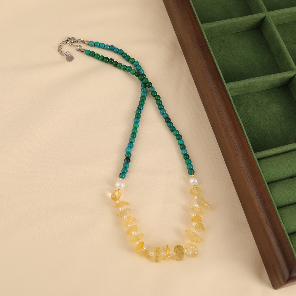 Versatile Ins-Style Natural Citrine Beaded Necklace for Women, Personalized and Fashionable High-End Natural Stone Sweater Chain Jewelry