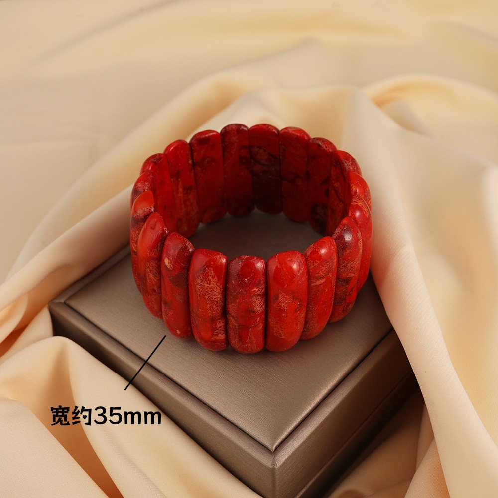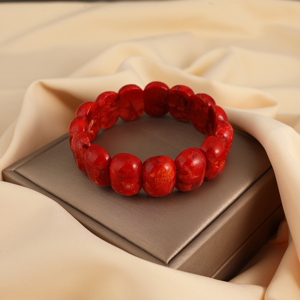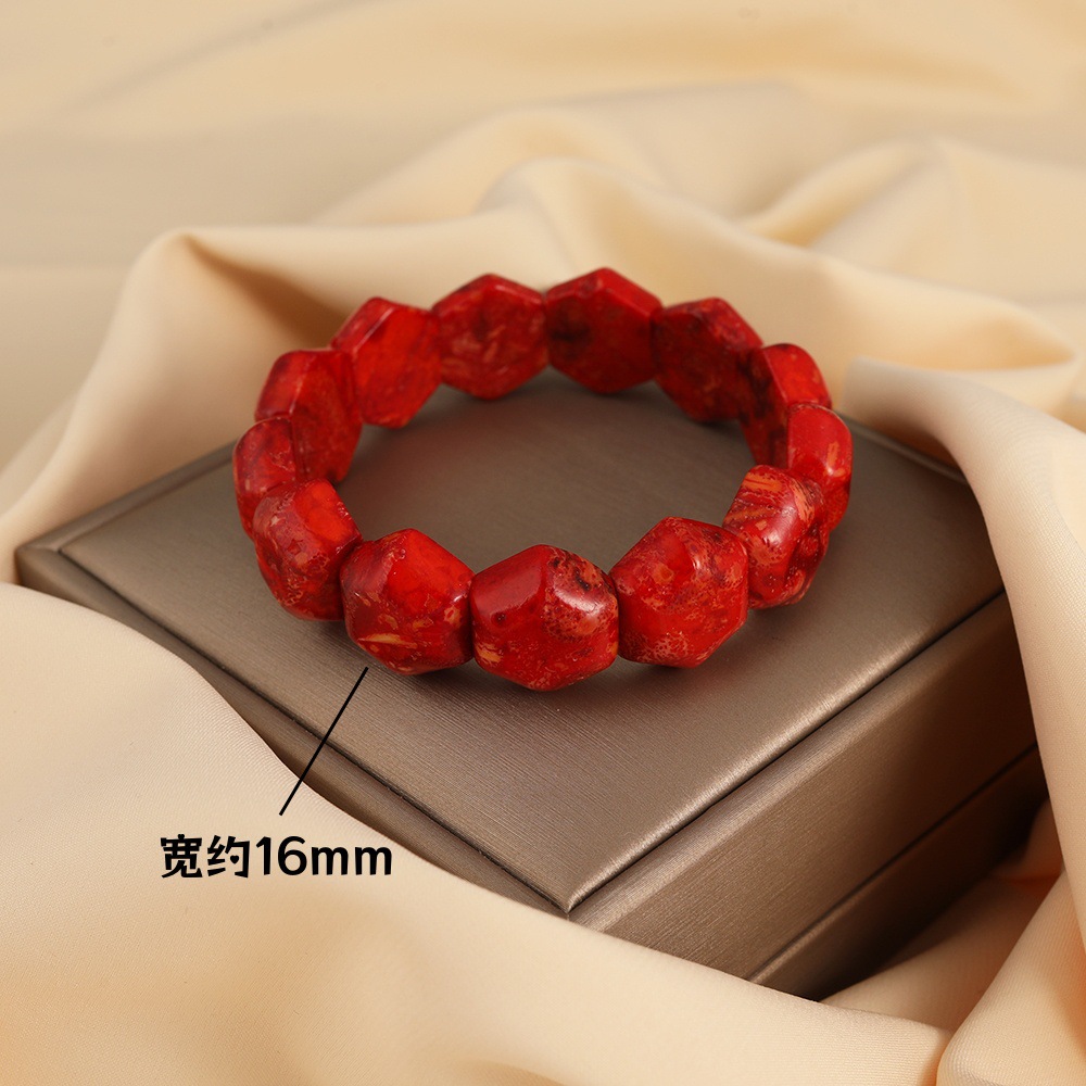 Vintage red natural grass coral hand hand row men's and women's lovers square bracelet text play bracelet jewelry wholesale