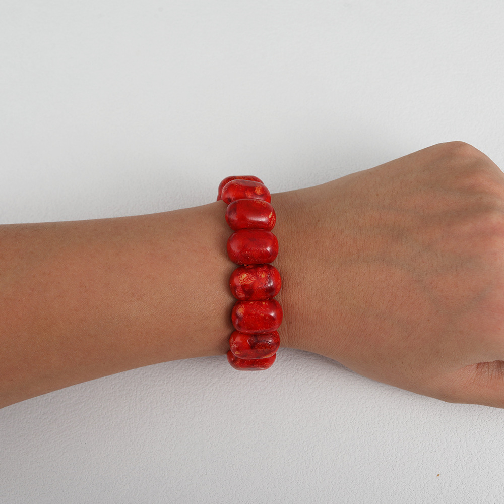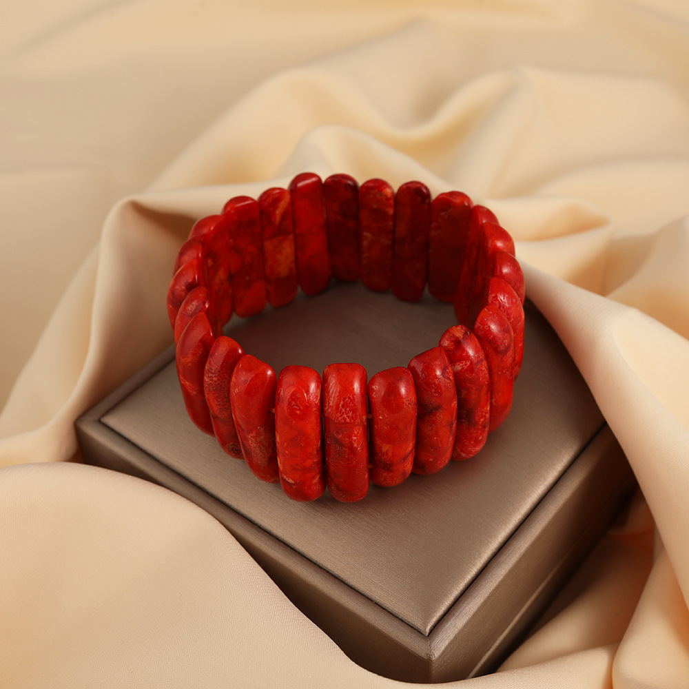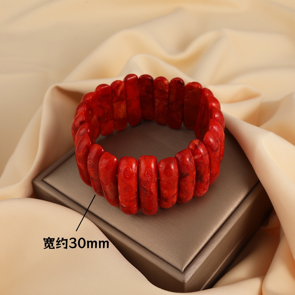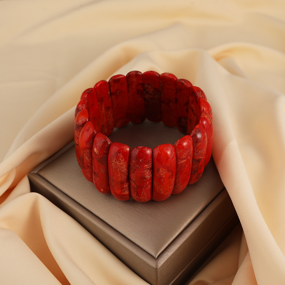 Vintage red natural grass coral hand hand row men's and women's lovers square bracelet text play bracelet jewelry wholesale