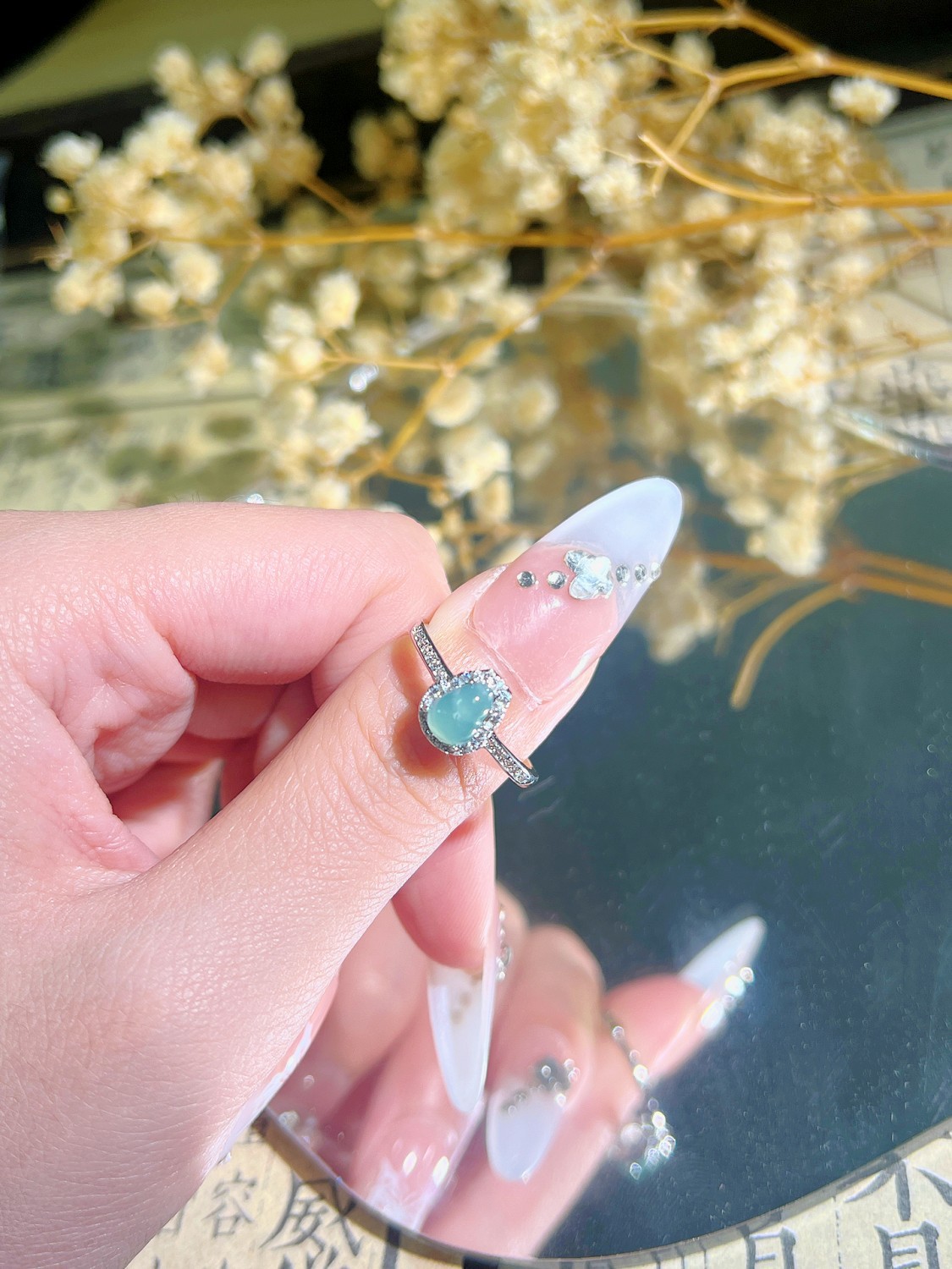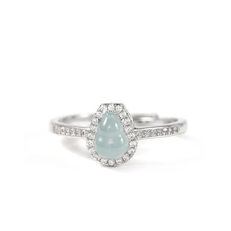 New Chinese Fashion All-match Natural Blue Water Jade Gourd National Tide Diamond Women's Ring Niche Explosive Jewelry for Women