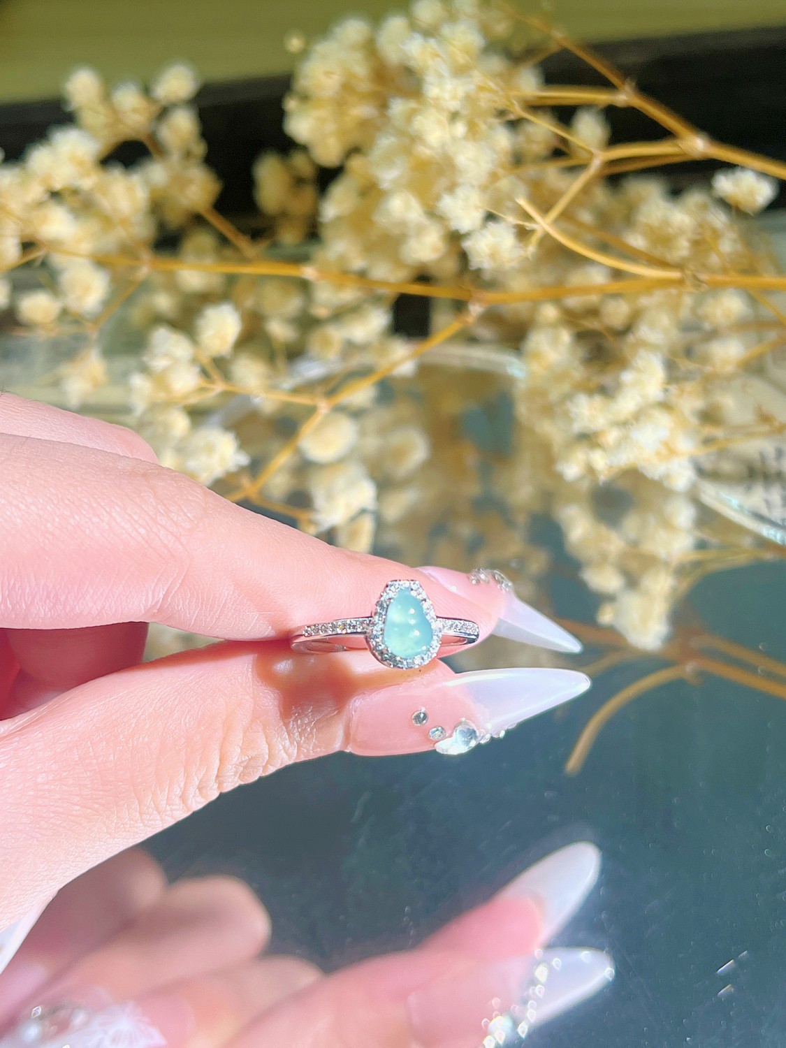 Blue water jade gourd open ring
