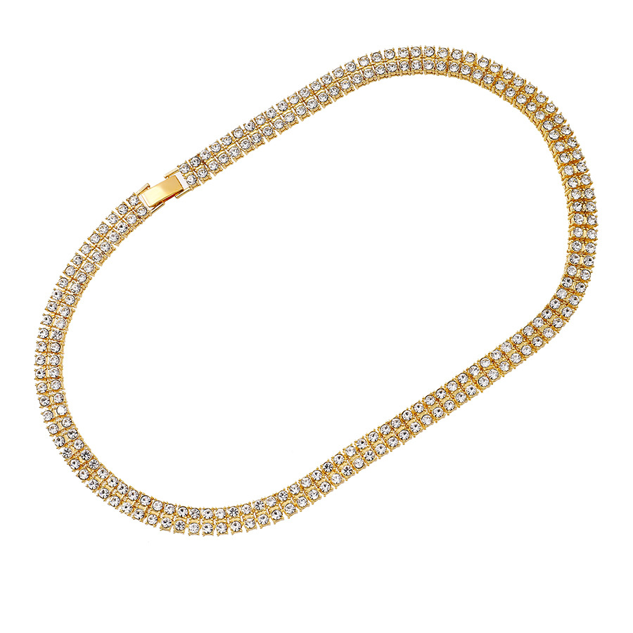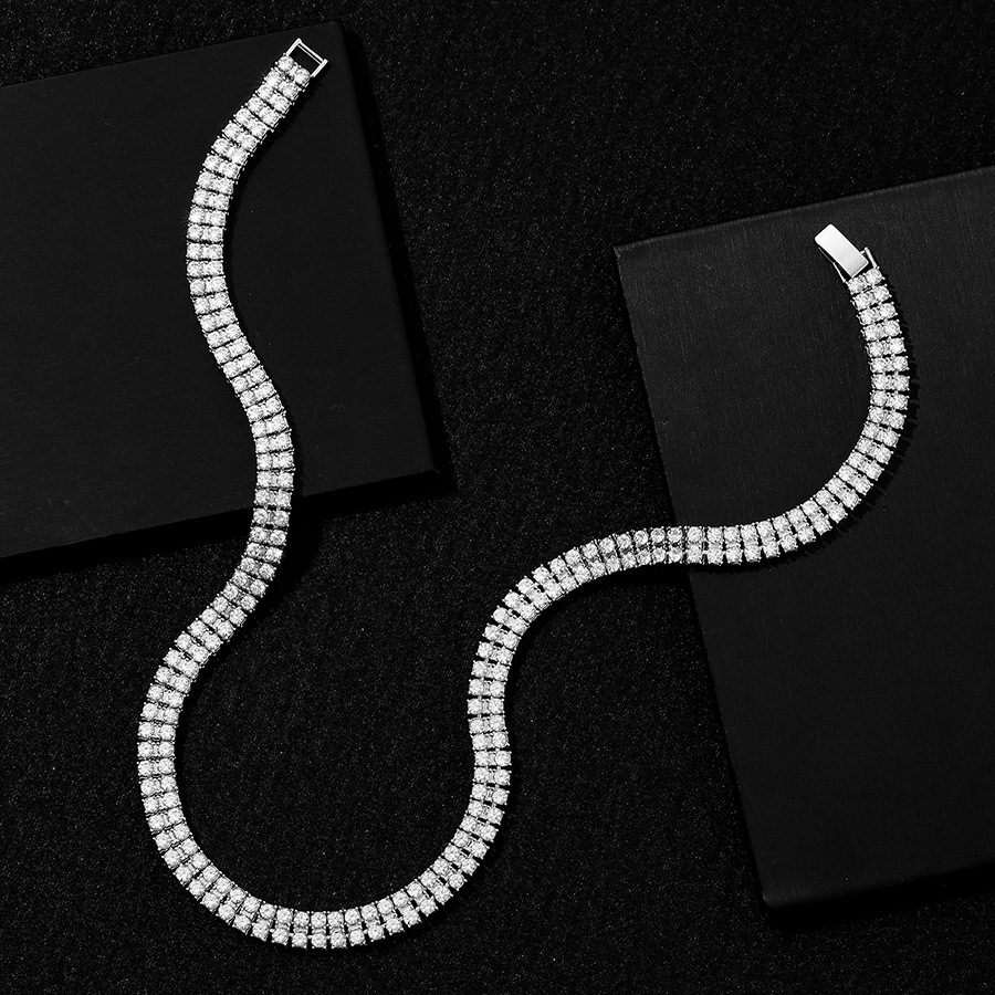Cross-border Hip Hop Double Row 9MM Tennis Chain Fashion Simple Men's and Women's Necklace Jewelry Rap Street Dance Same Style Jewelry