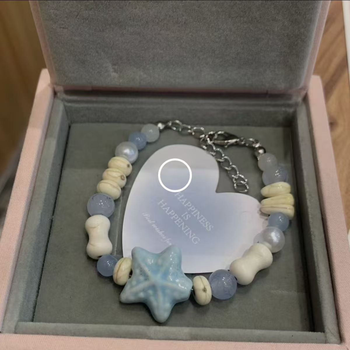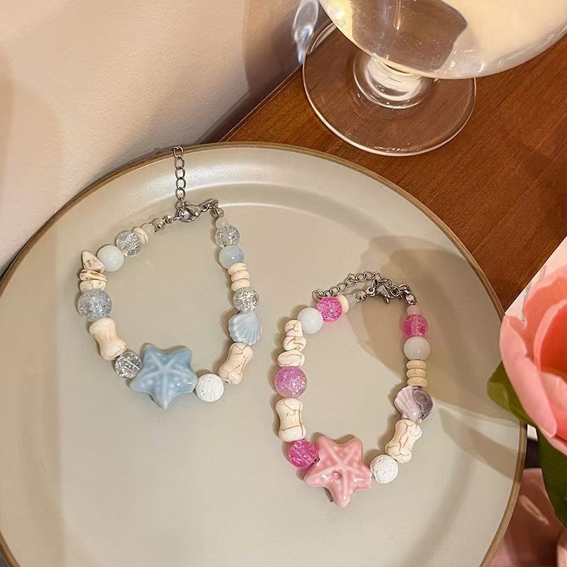2025 Hot Style Pink Blue Beaded Starfish Bracelet for Women Niche Sweet Girl Gift for Best Friend Gift Hand Jewelry
