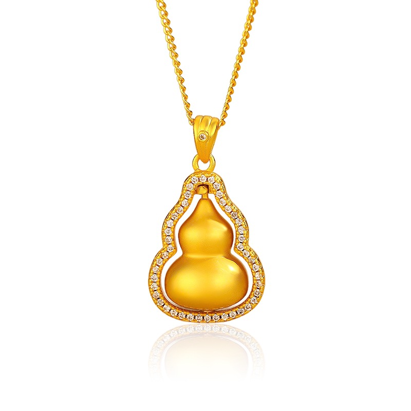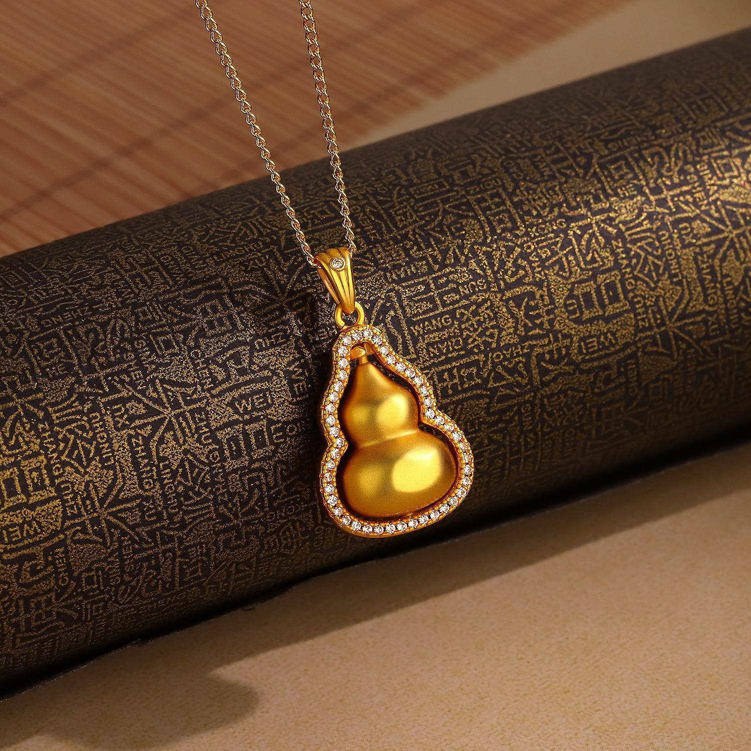 Point Drill Gourd Necklace Women's Fashion Elegant Light Luxury New Chinese Style Rotatable Design Collarbone Chain for Girlfriend Gift
