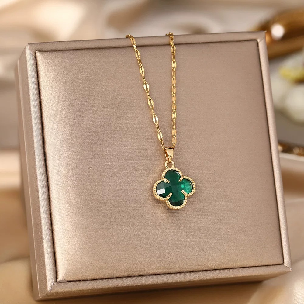 Color: Green double-sided four-leaf flower necklace [real gold plating]
