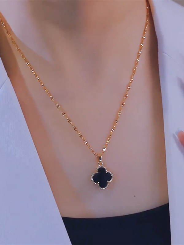 Color: Black double-sided four-leaf flower necklace [real gold plating]