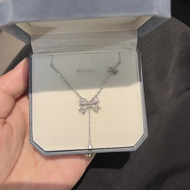 Color: Copper inlaid zirconium pendant necklace + cross chain [simulated silver]
