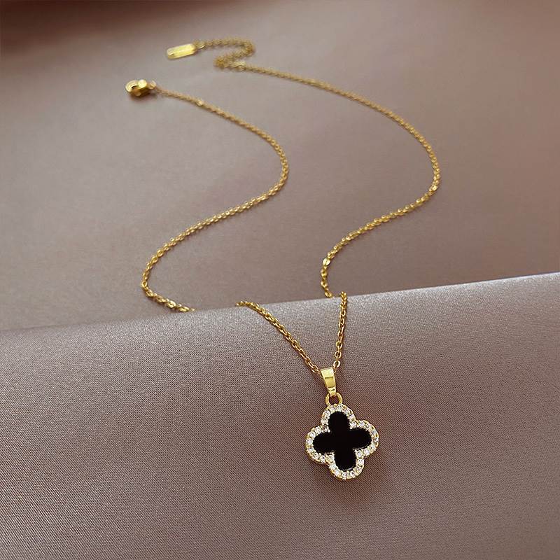 Color: Black and white double-sided zirconium four-leaf clover necklace [real gold plating is not easy to fade]