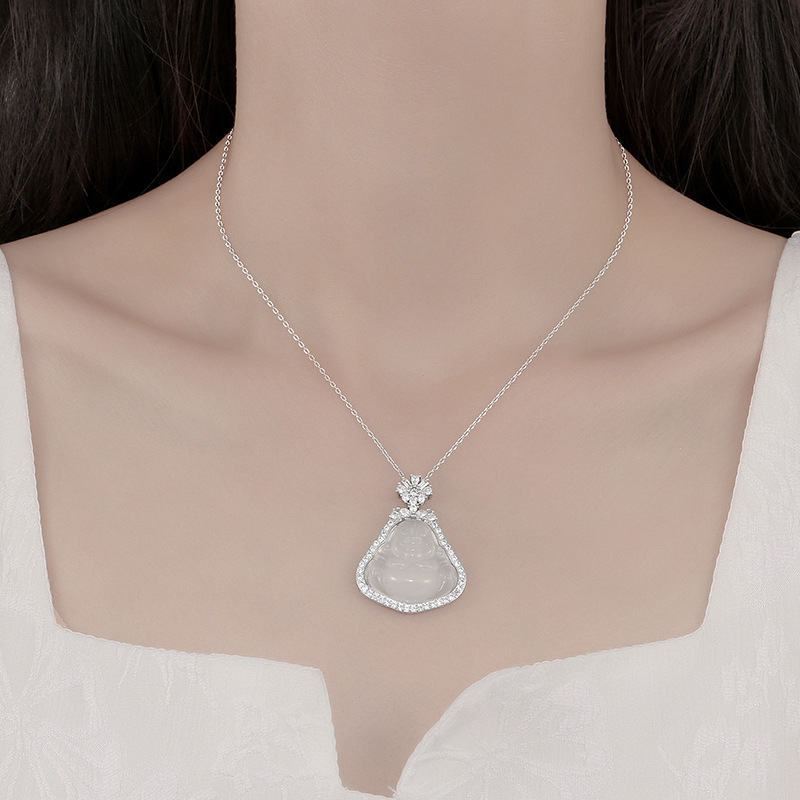 Color: White big belly buddha pendant o-shaped chain [simulated silver]