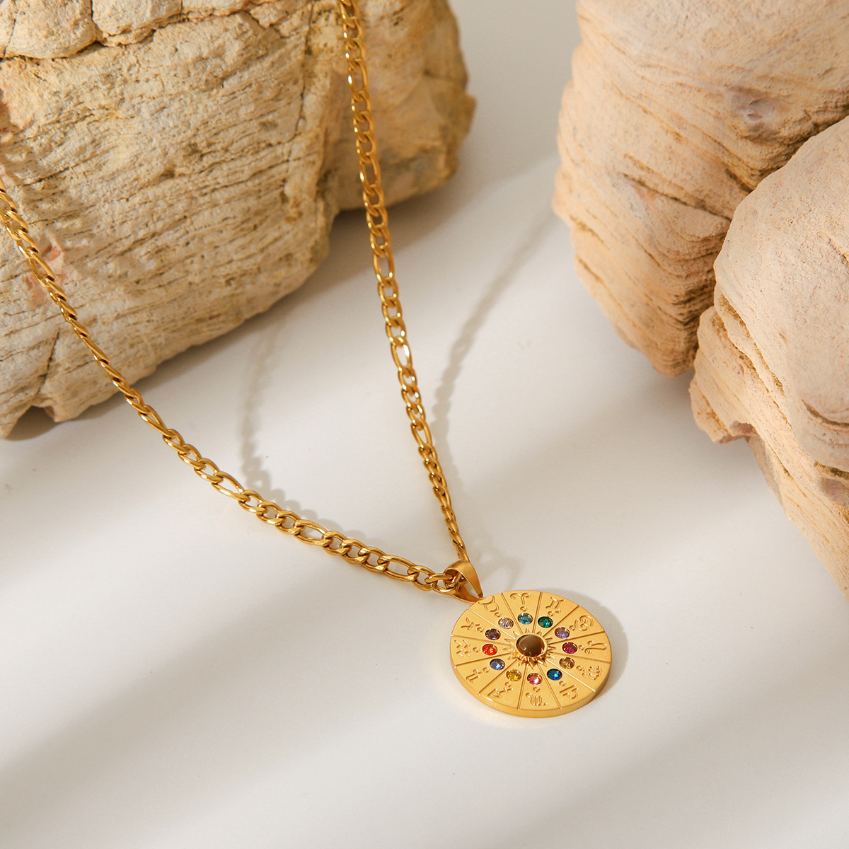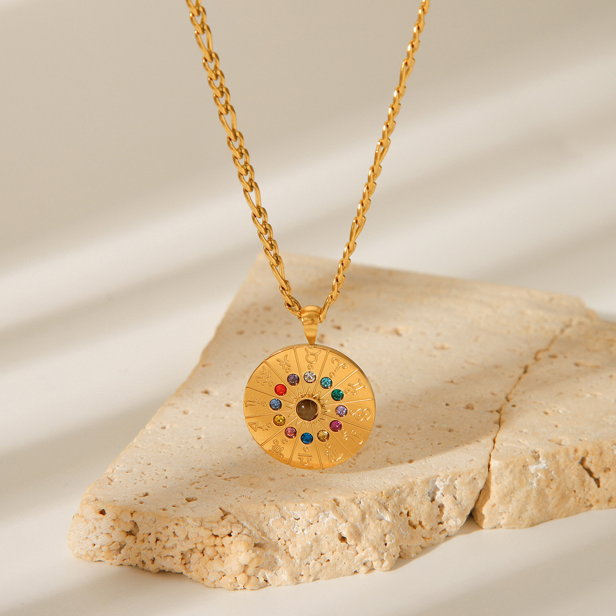 Amazon Explosions ins Wind Twelve Constellation Symbol Pendant with Diamond Stainless Steel Necklace Design Sense Woolen Chain for Women