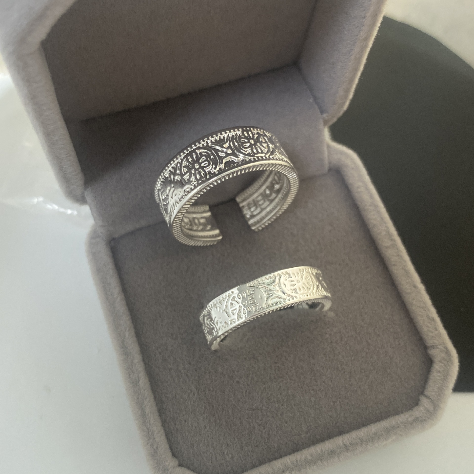Lucky Sixpence Couple's Ring Niche Design Fashion Personality High-end Sense Trendy Cold Wind Ring for Men and Women