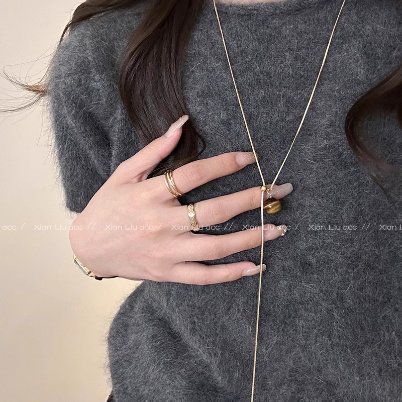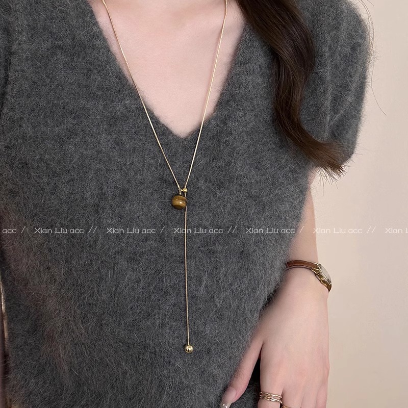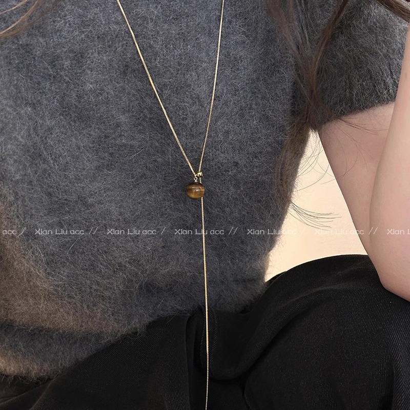 Design sense tiger eye stone autumn and winter long sweater chain 2024 new temperament light luxury high-end necklace women's accessories