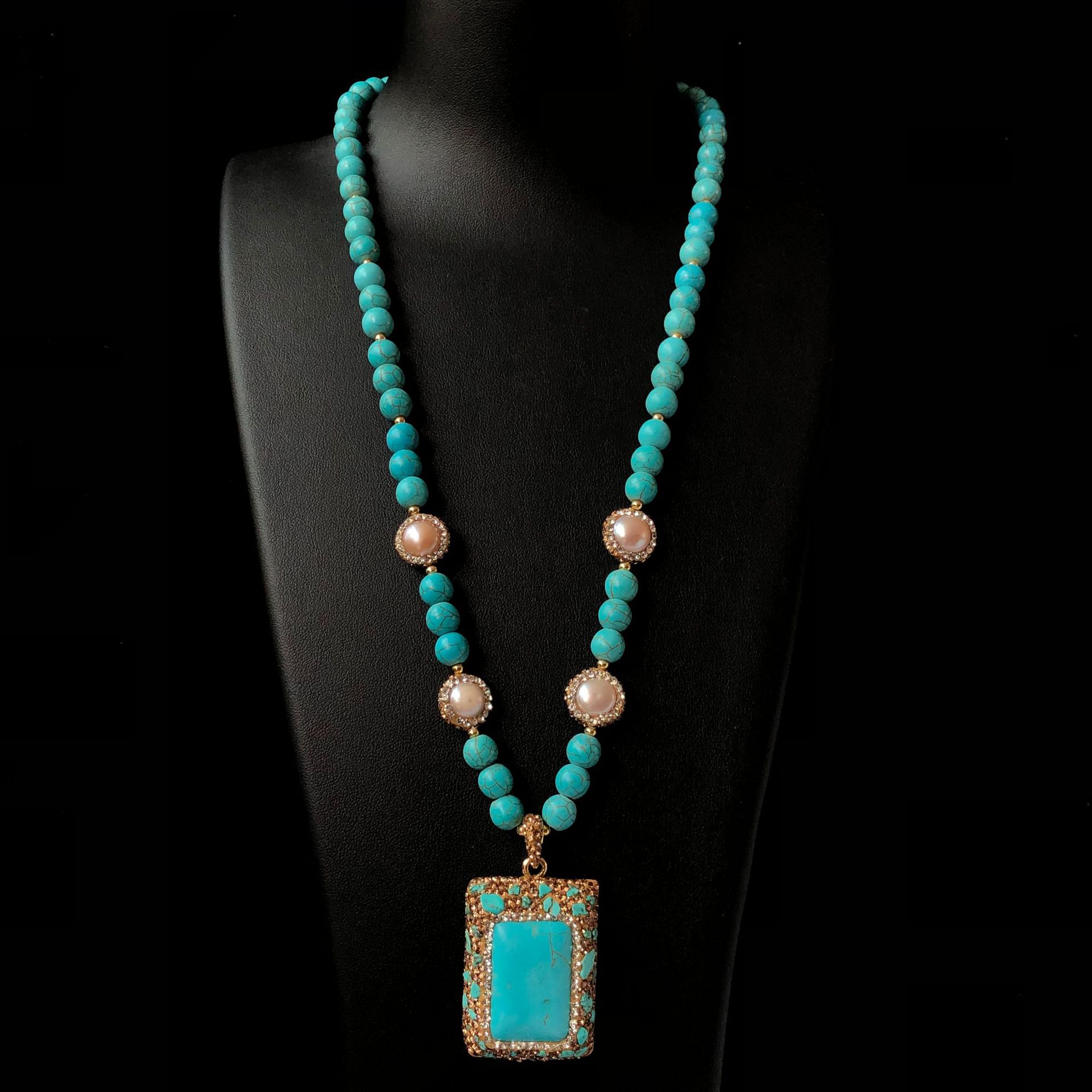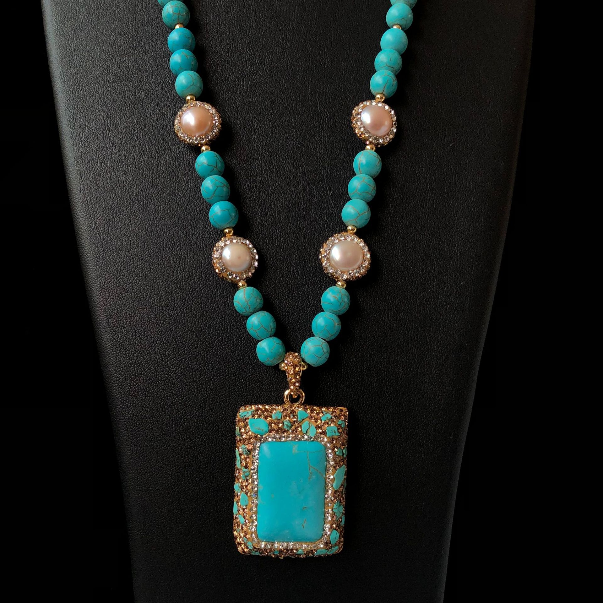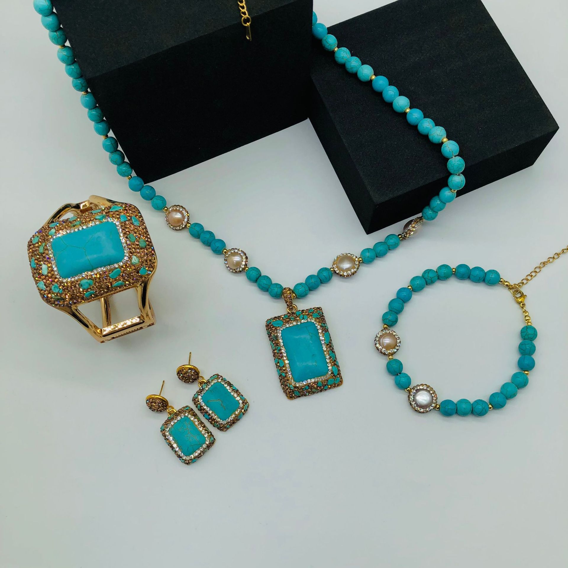 Turquoise pearl necklace earrings bracelet wide side bracelet fashion luxury suit a generation of manufacturers wholesale