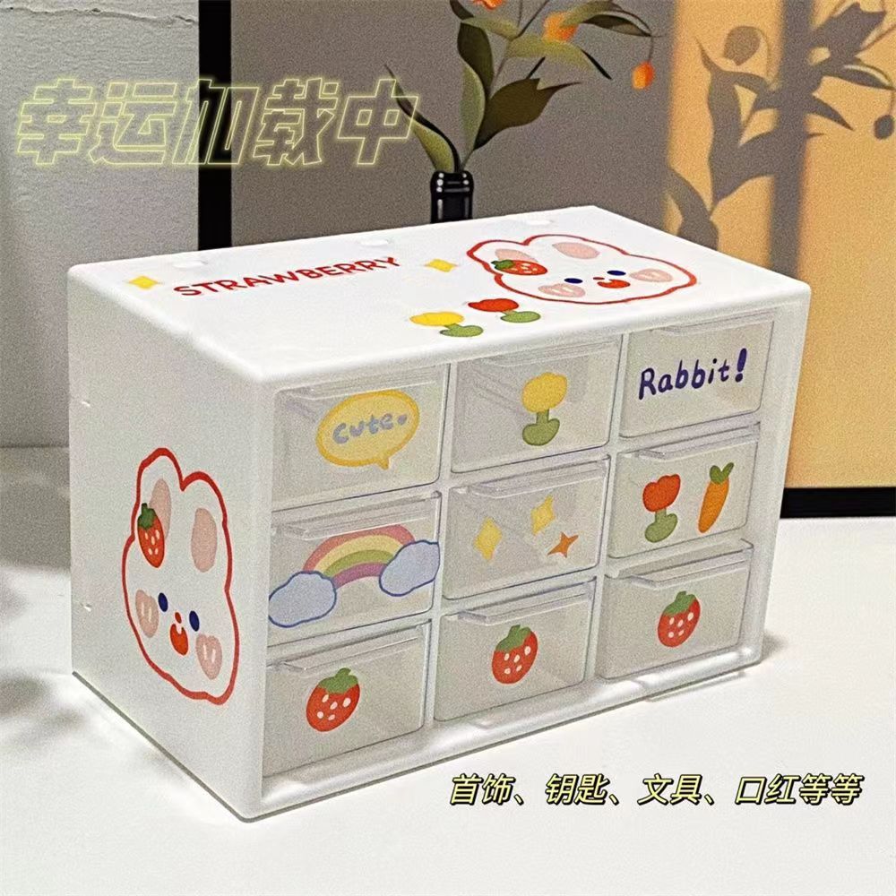Color: Six-square grid white large drawer model + cinnamon dog stickers