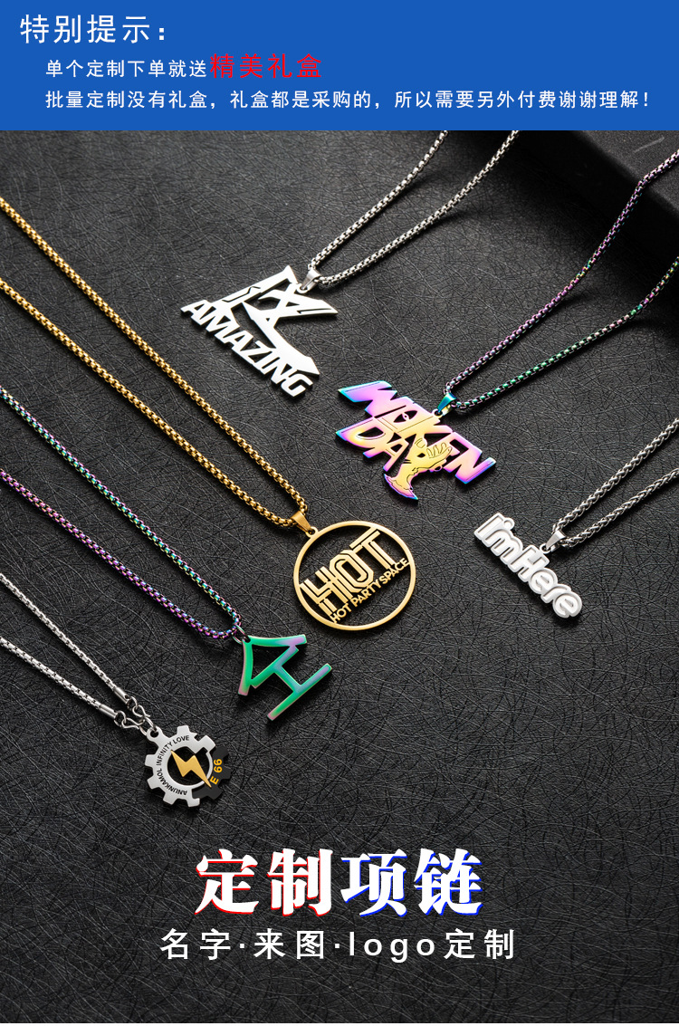 Customized Titanium Steel Necklace with Pictures, Name Pendant, Letter Clavicle Chain, Customized Bar Logo, Hip-Hop Jewelry Production