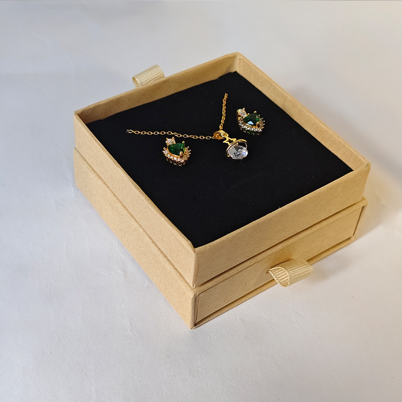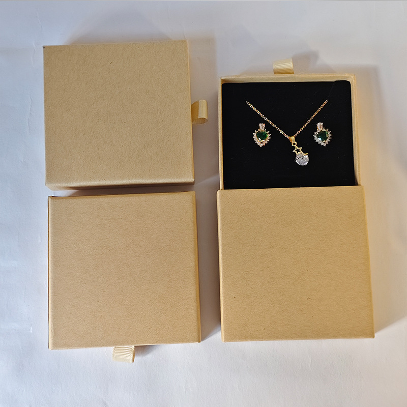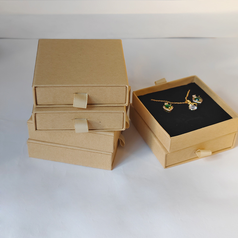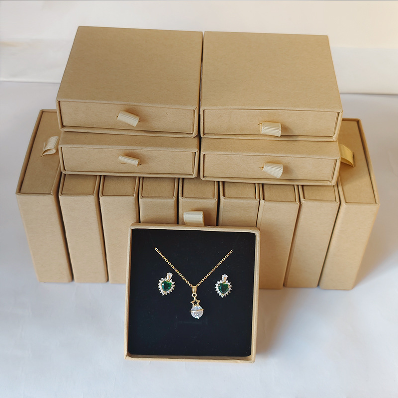 Cross Border Necklace Box Drawer Cowhide Paper Box Earrings Necklace Ring Bracelet Box Pearl Jewelry Packaging Box in stock