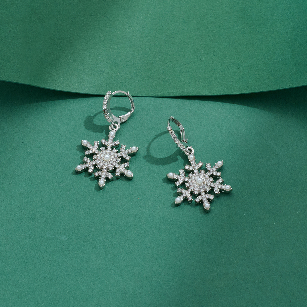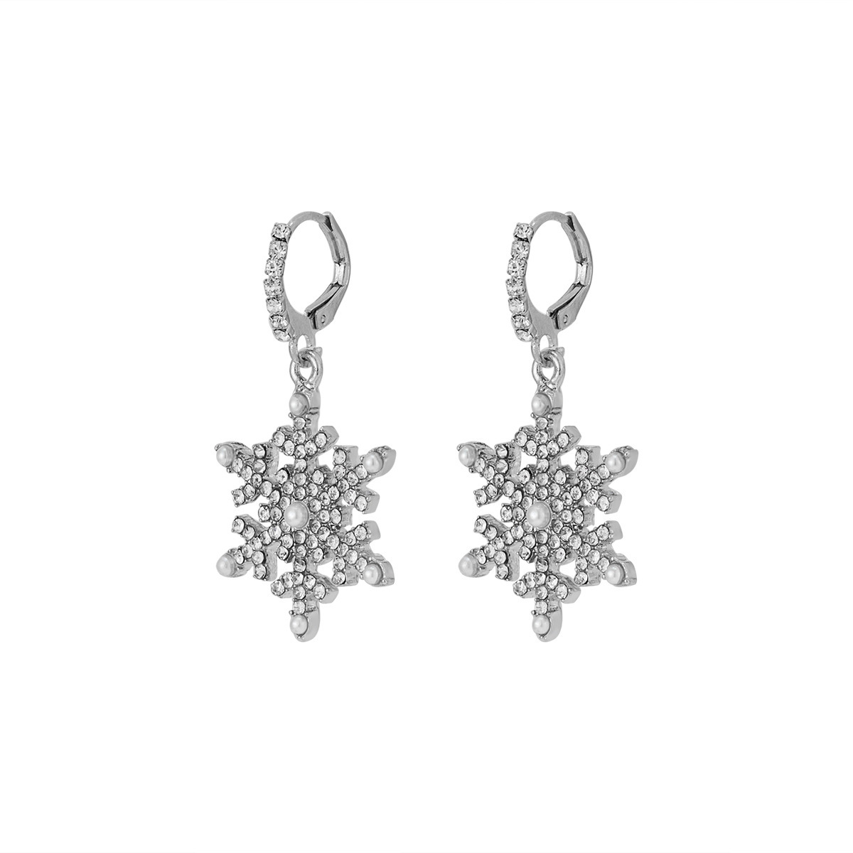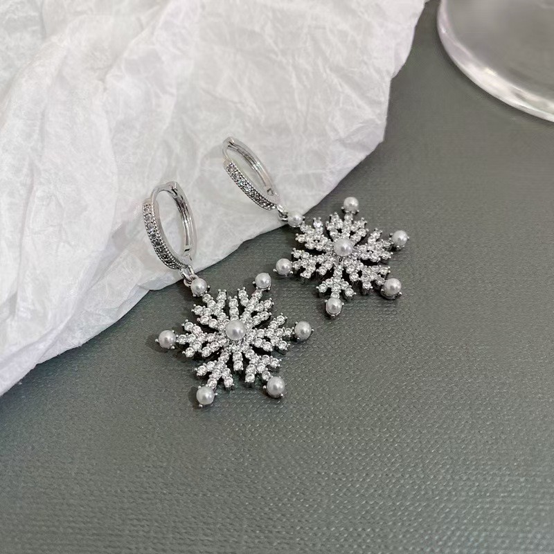 Wholesale Snowflake Zircon Earrings, High-End Luxury Earrings, Winter High-End Luxury Micro-Encrusted Diamond Pearl Earrings