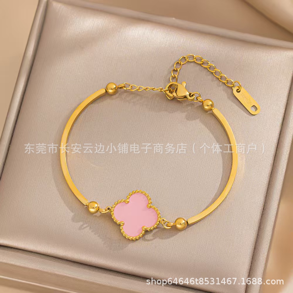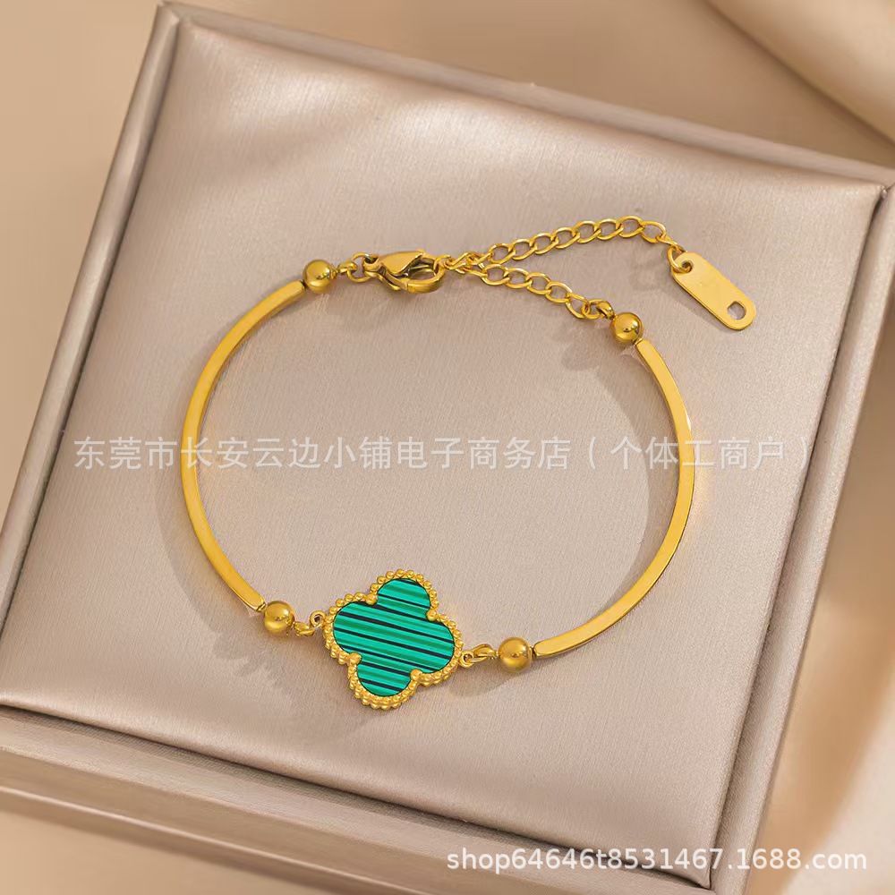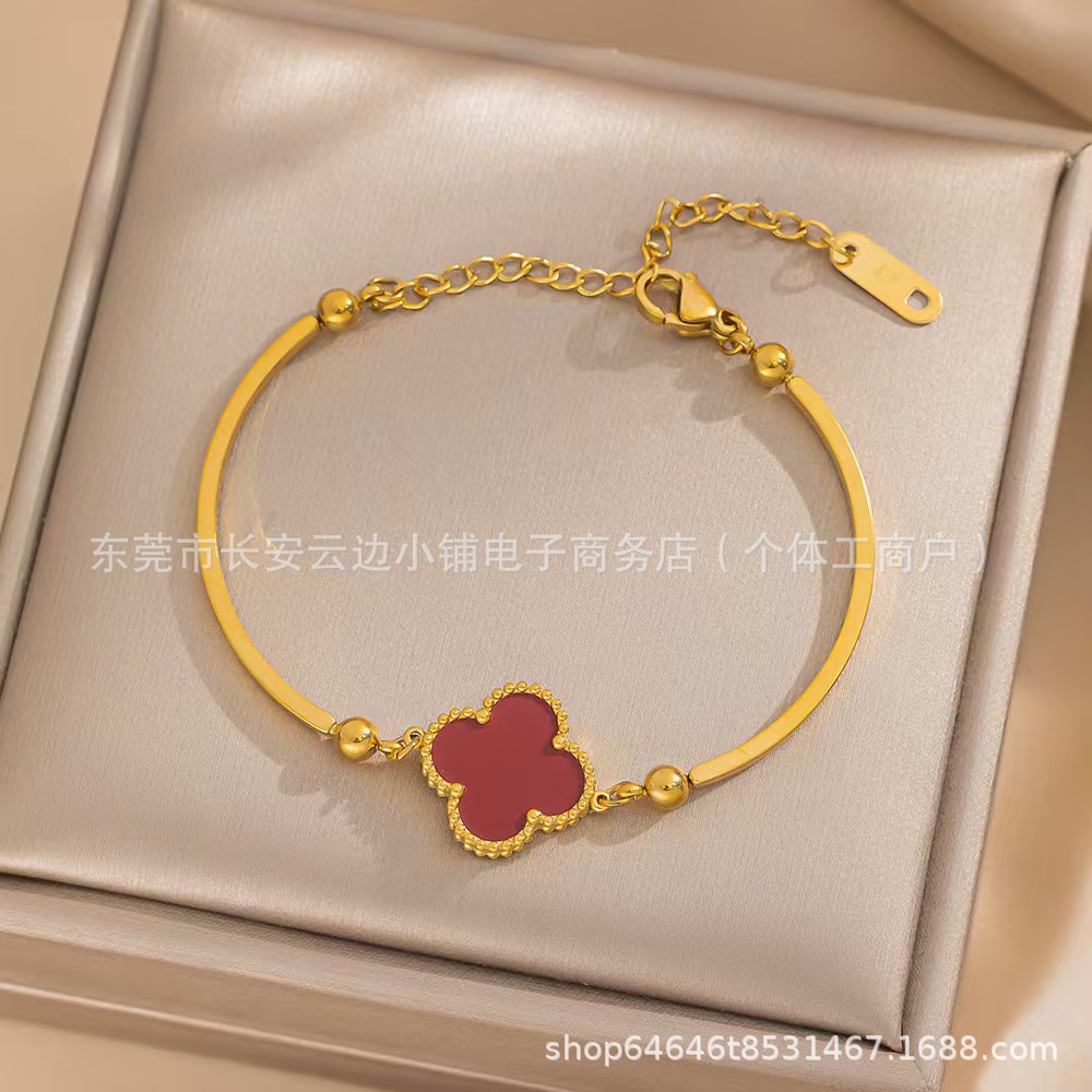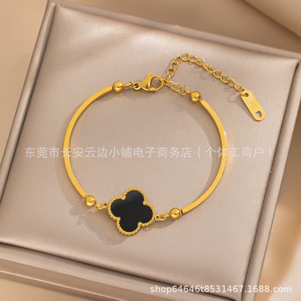 High Version Lucky Four-leaf Clover Bracelet Women's 18K Gold Plating Stylish Elegant Style Simple Bracelet Cross-border Europe