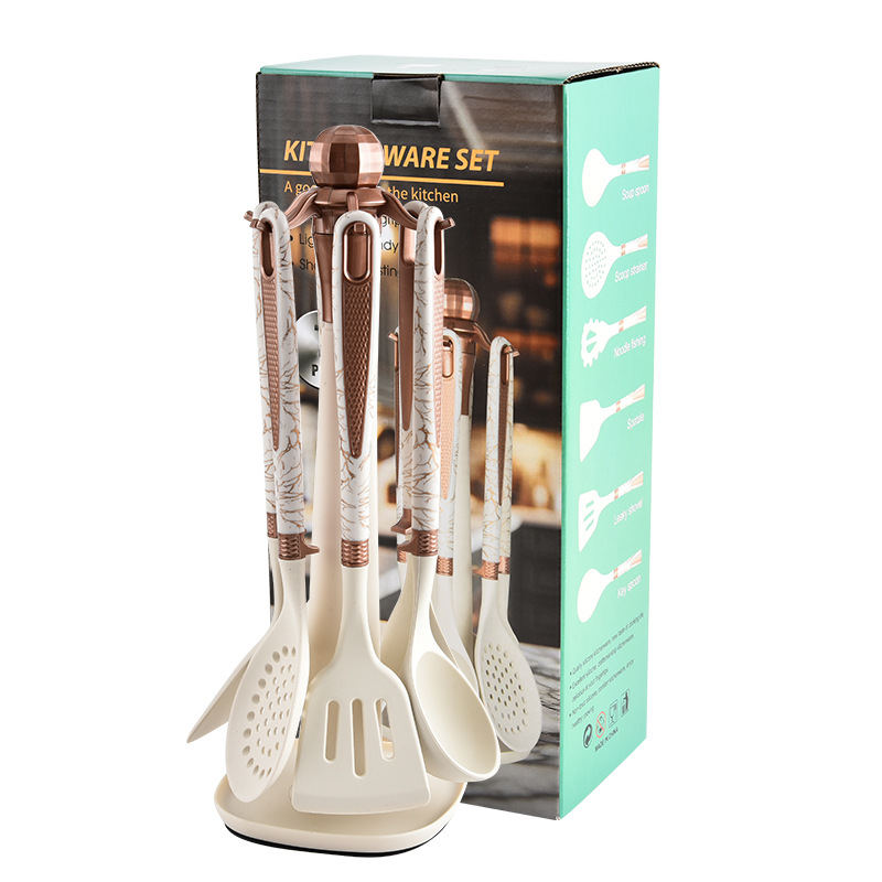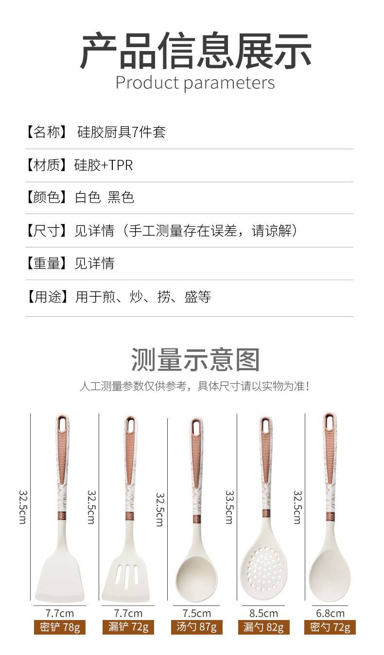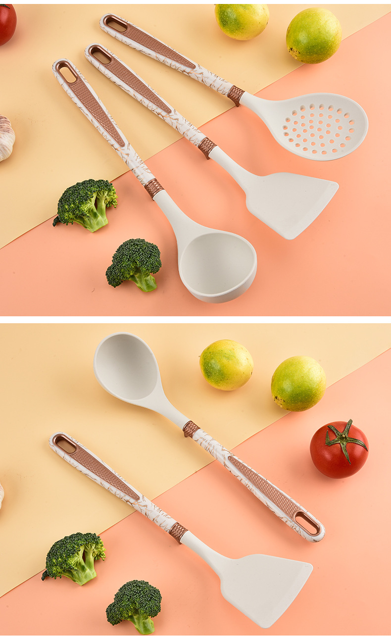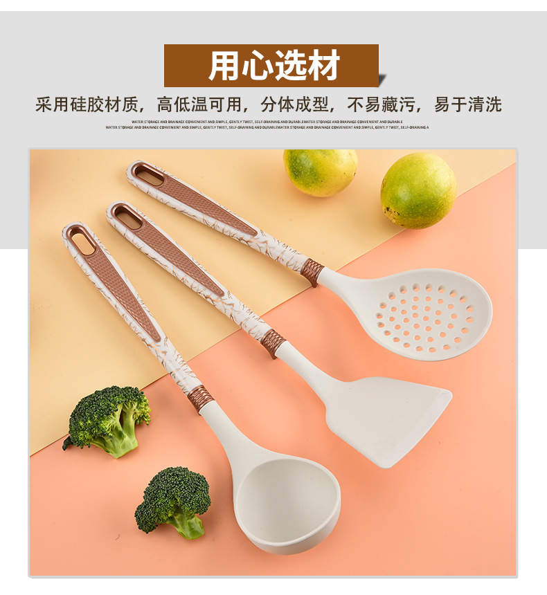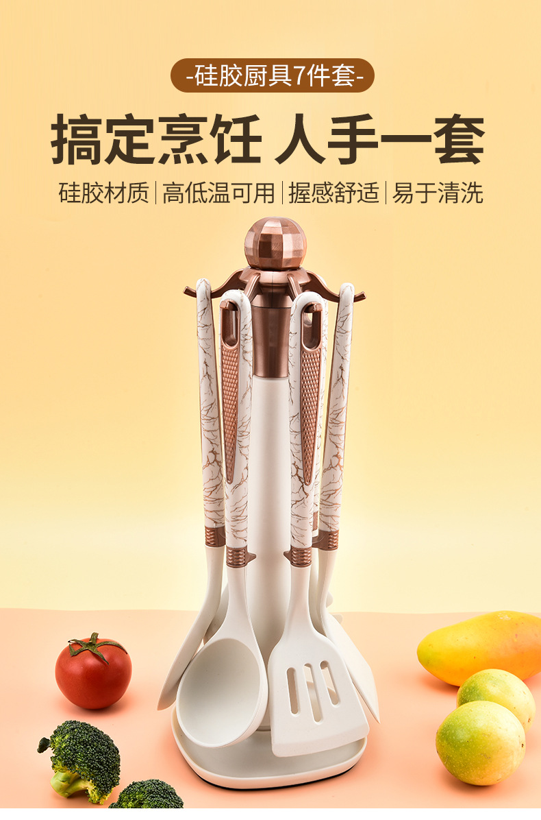 Silicone Kitchenware Seven-piece Set of Diamond Pattern Handle Non-stick Pan Special Scutlery Soup Spoon Scutlon Powder Grasp Colander Salad More