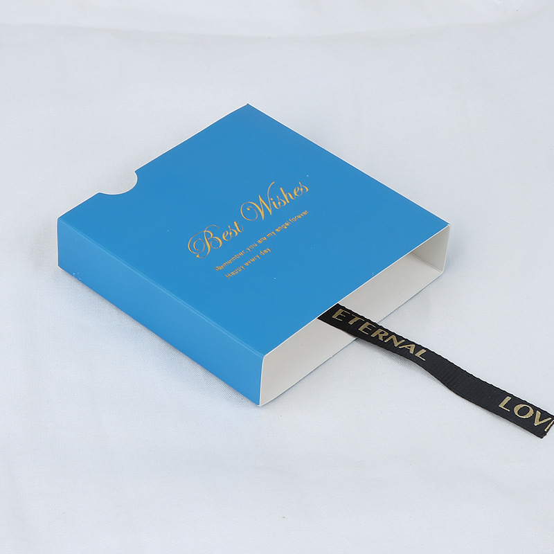 Specification model: Klein blue-paper cover with rope and words; 7*7*2cm