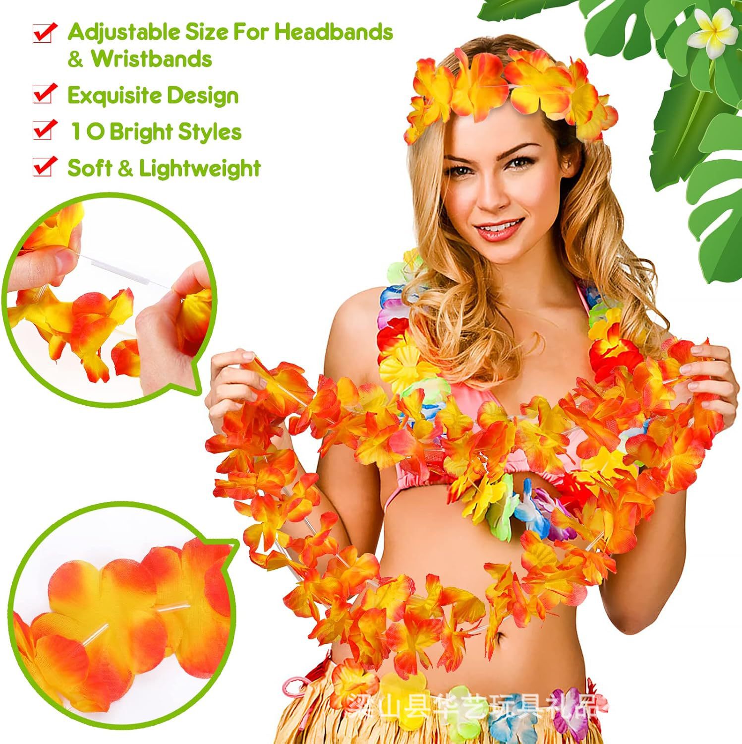 Wholesale Party Hawaiian Wreath 12 Color Petal Necklace Head Ring Bracelet Four-Piece Set Holiday Event Dress Up Accessories