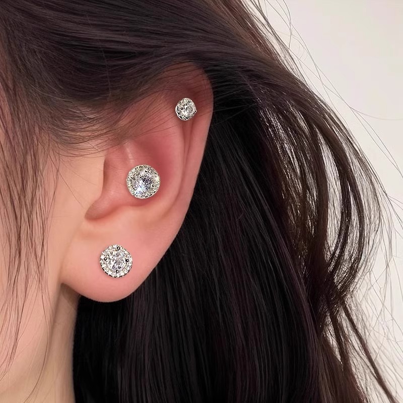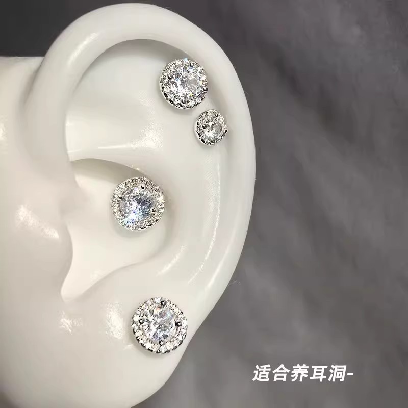 European and American Hip-Hop Style Round Earrings Internet Celebrity New Exquisite Small All-Match Earrings Hiphop Personalized Men's and Women's Style