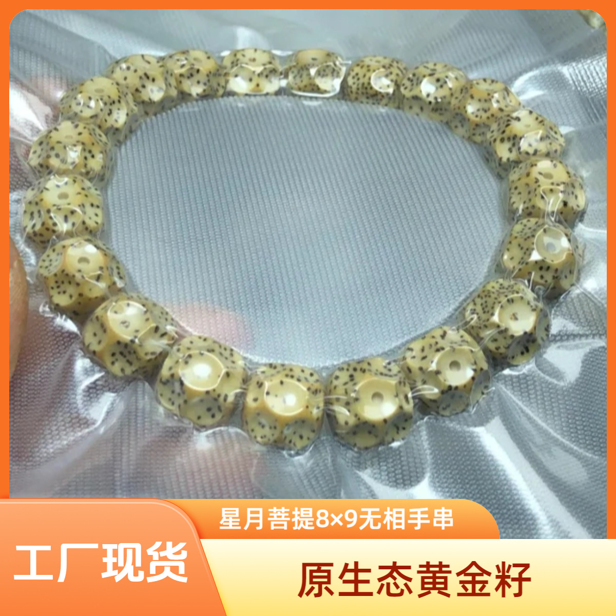 Star and Moon Bodhi Golden Seed 8×9 Unadorned Bracelet Fine Craft Single Circle Bracelet Wholesale Cultural Plaything Buddhist Beads Golden Seed Bracelet