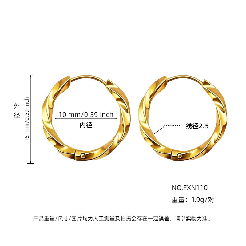 Color: Gold inner diameter 10mm outer diameter 15mm