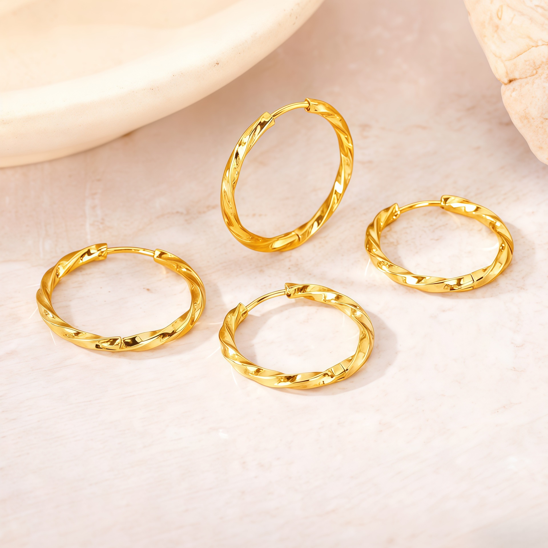 Color: Three pairs of gold inner diameter 8-10-12mm