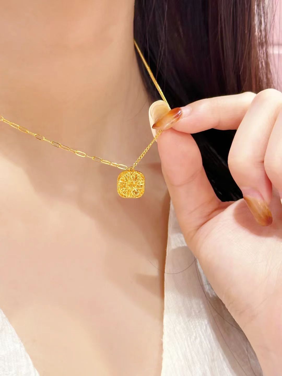 Color: Explosive brushed small square candy necklace (integrated chain)