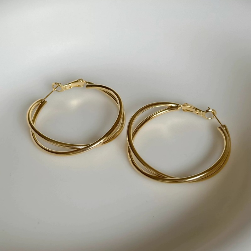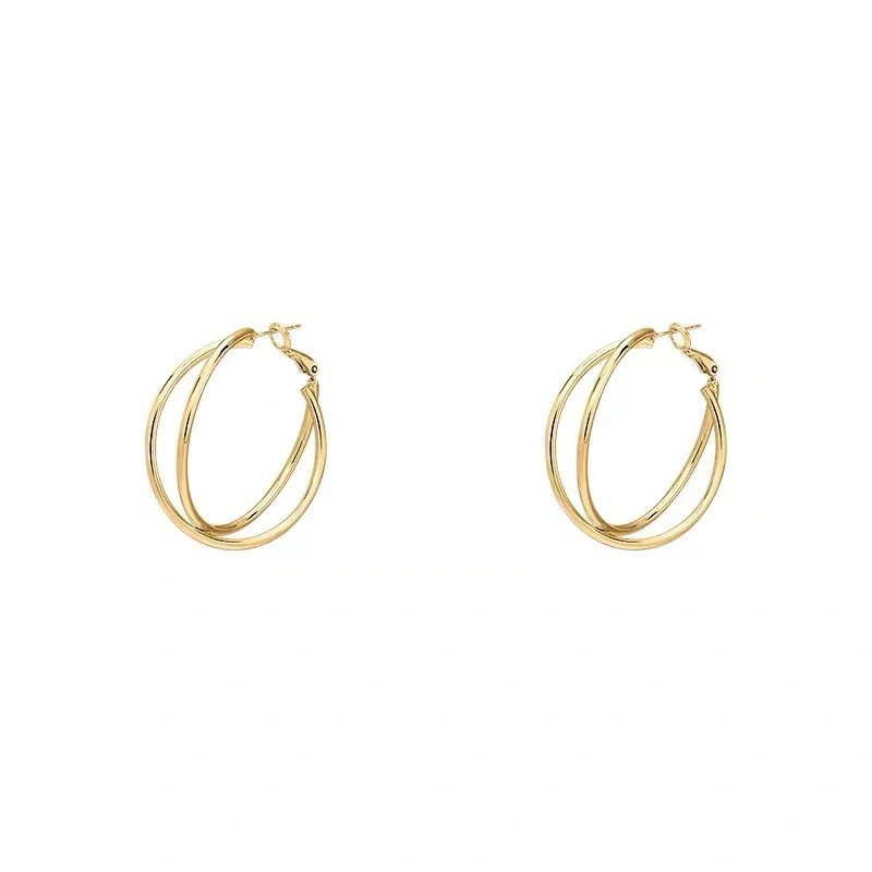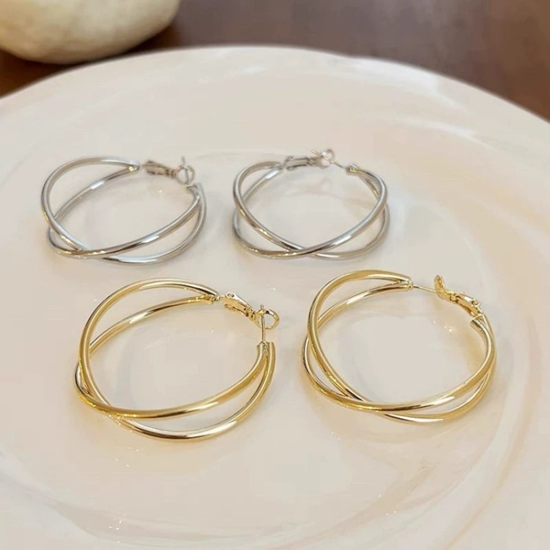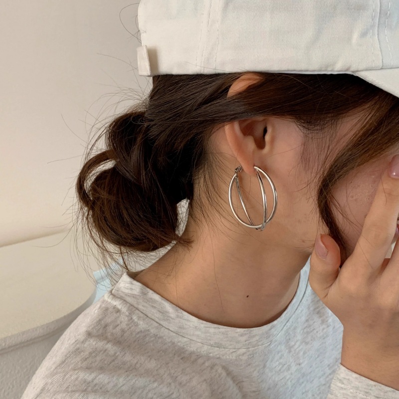 European and American Minimalist Cross Metal Circle Double Layer Ear Ring All-match Elegant Piece Ring Earrings Women's High-end Fashionable Earrings