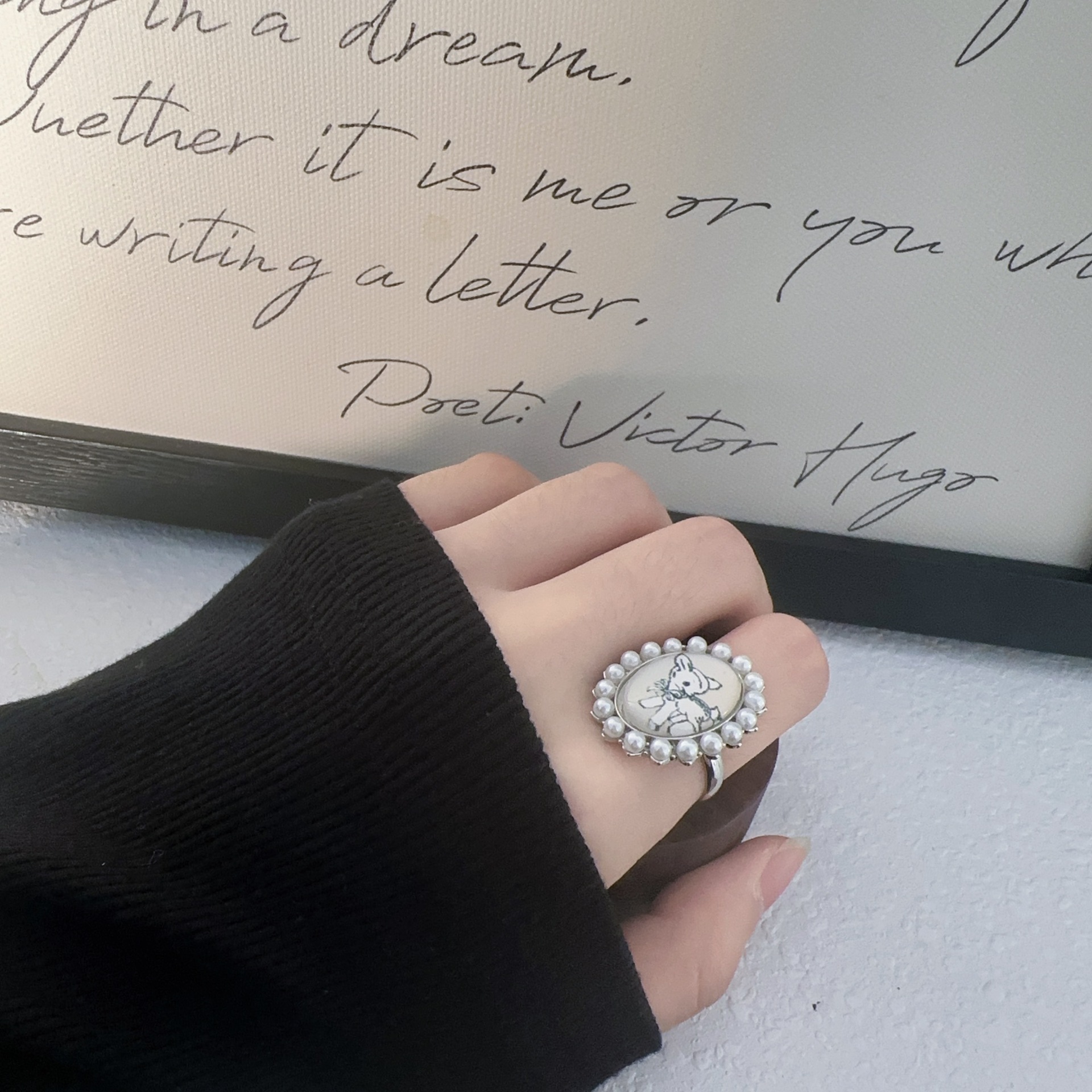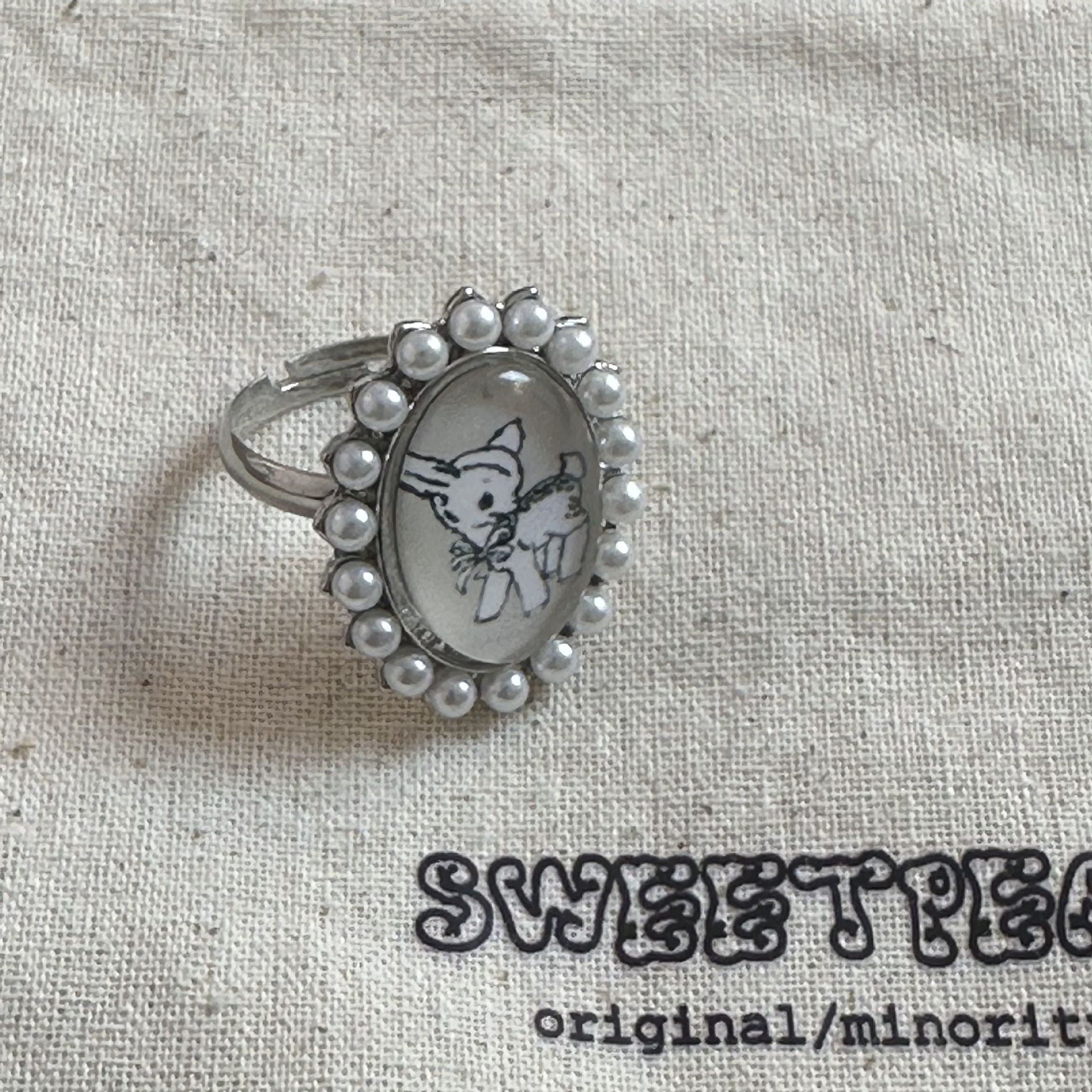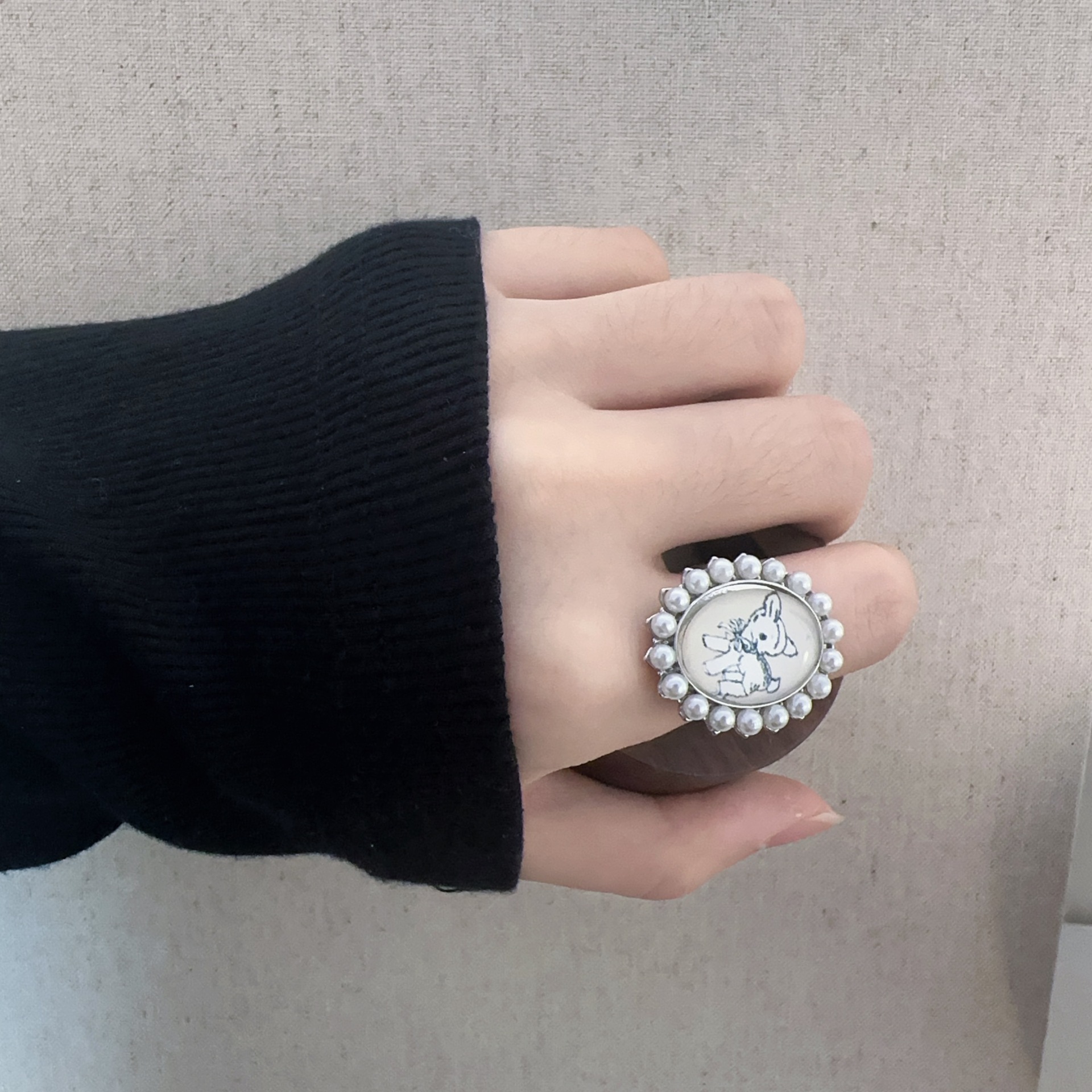Ouyang Nana Korean Style Retro Fawn Pearl Ring Women's Light Luxury Niche Exquisite Fashion All-match Ring for Women