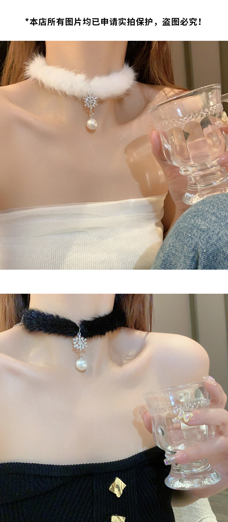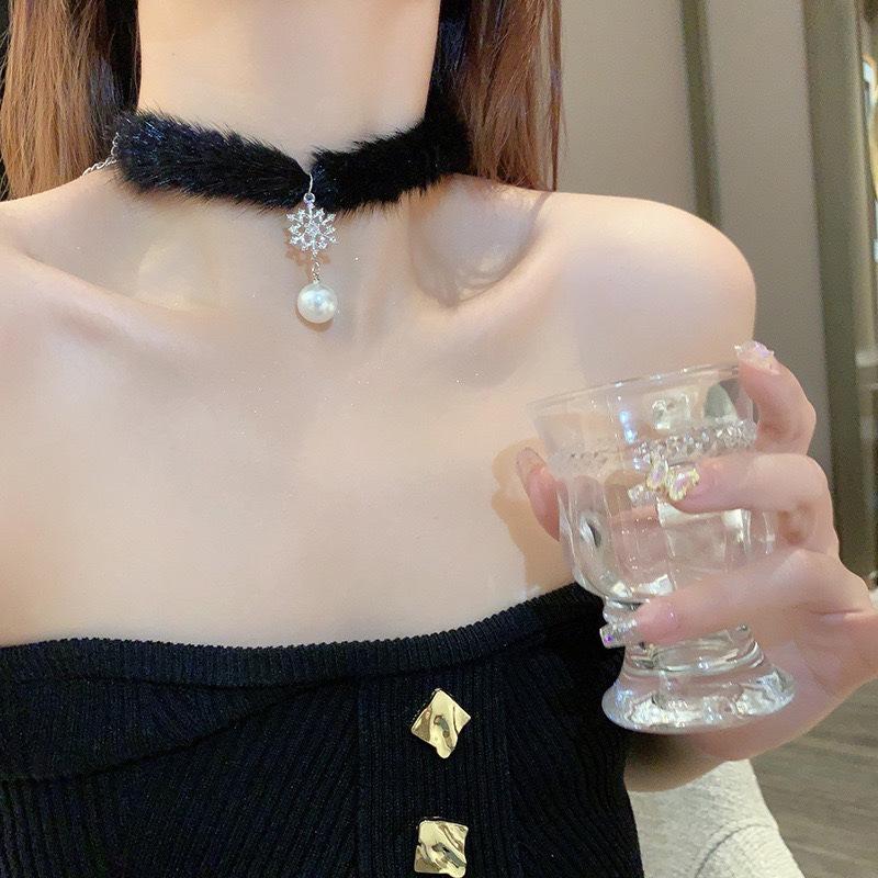Pure Desire Style Feather Snowflake Necklace for Women, Christmas Sexy Fairy-Like Furry Neck Choker, Crystal Elegant Collarbone Necklace