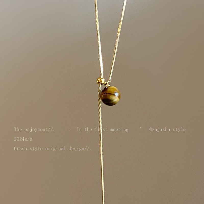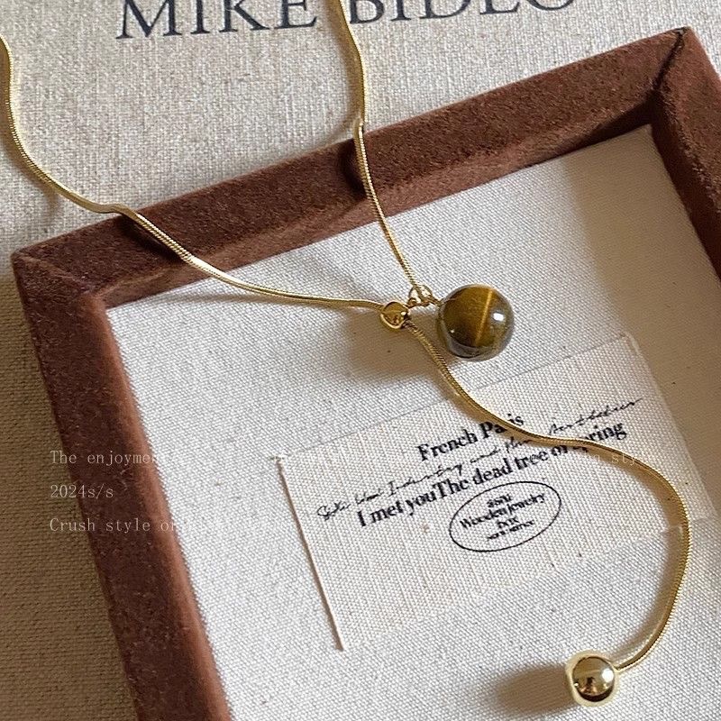 Maillard Tiger Eye Tassel Necklace Women's Autumn and Winter Vintage High-end Fashion Sweater Chain Niche Design Sweater Chain