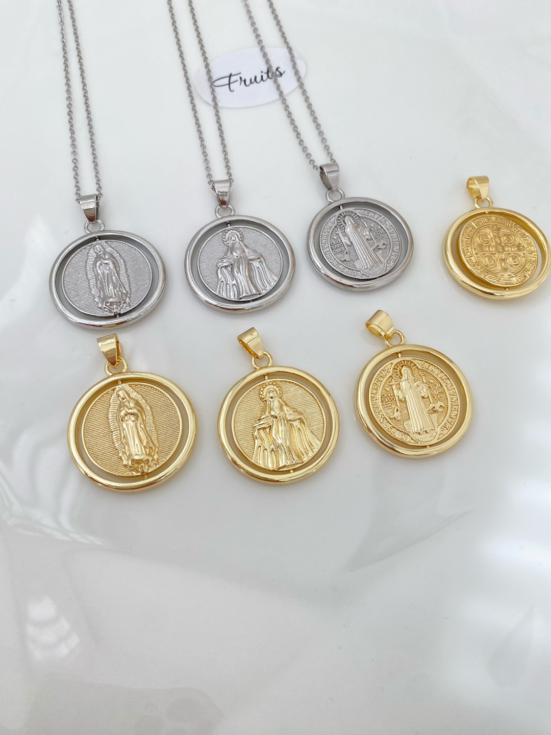 New Old Vintage Religious Virgin Mary Hangtag Unisex Copper Pendant Punk Necklace Hip Hop Accessories