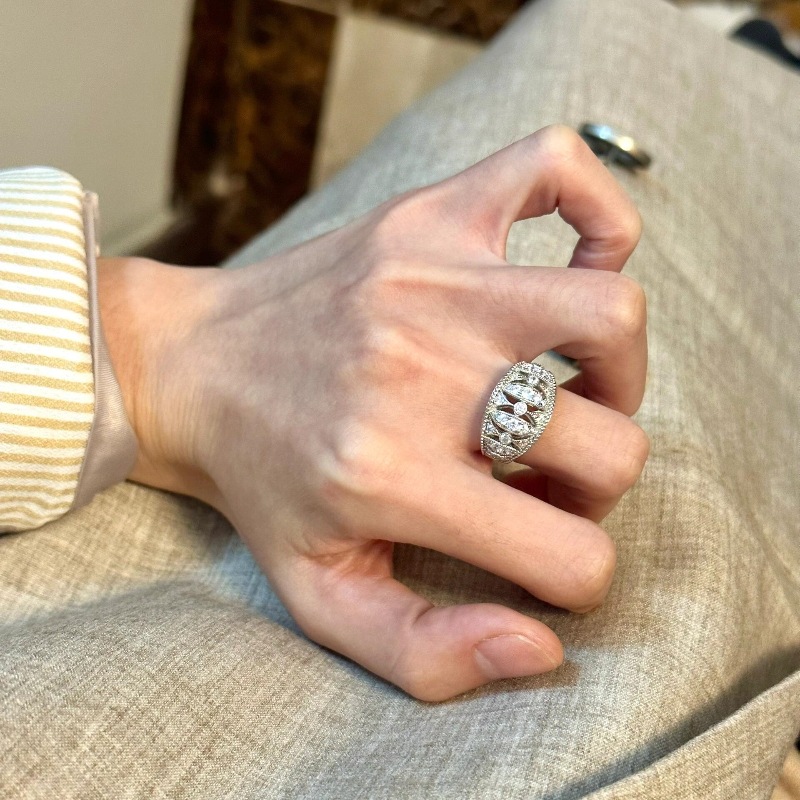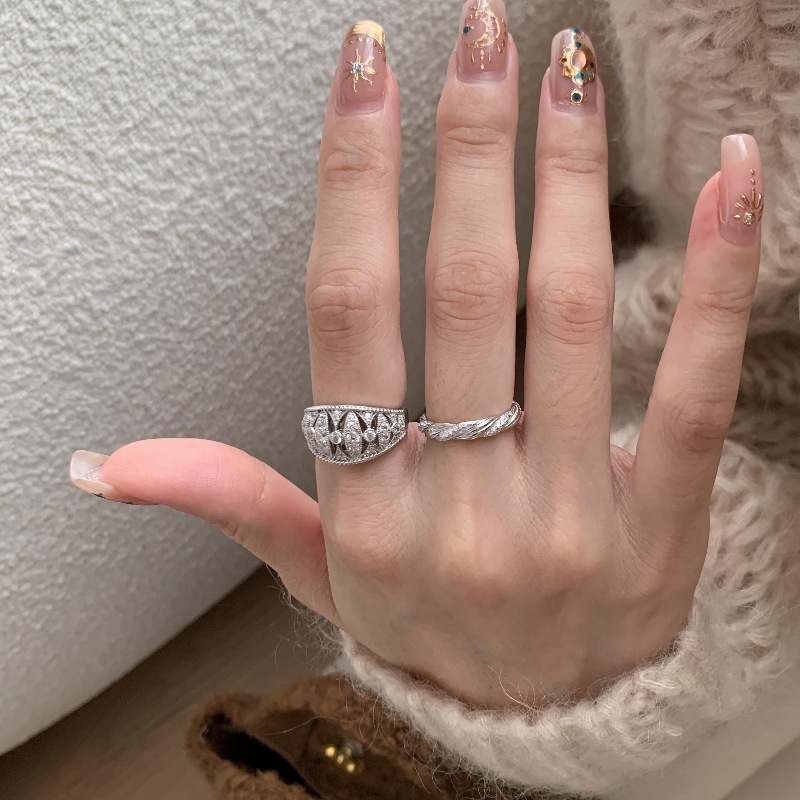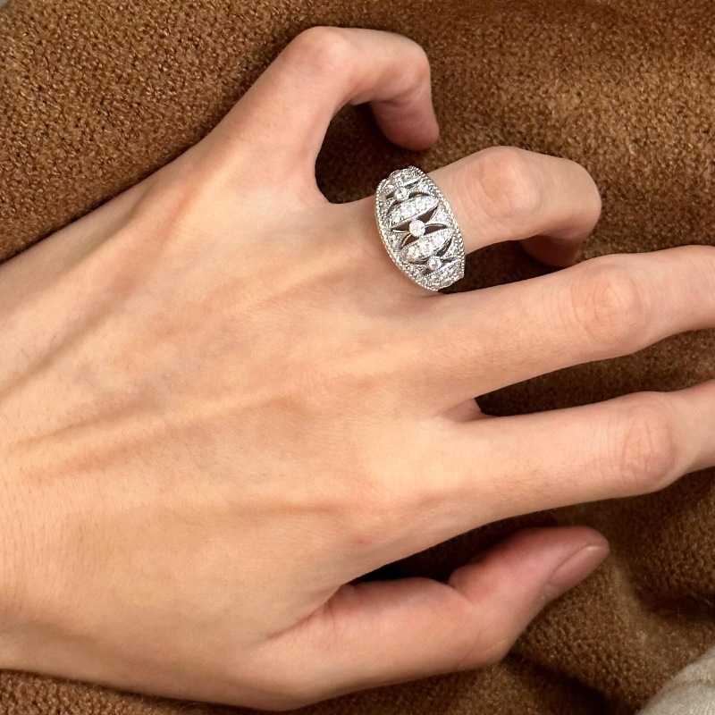 Vintage Middle Ancient Hollow Lace Full Diamond Ring Light Luxury High-grade Retro Seiko Elegant Personalized Stacked Ring