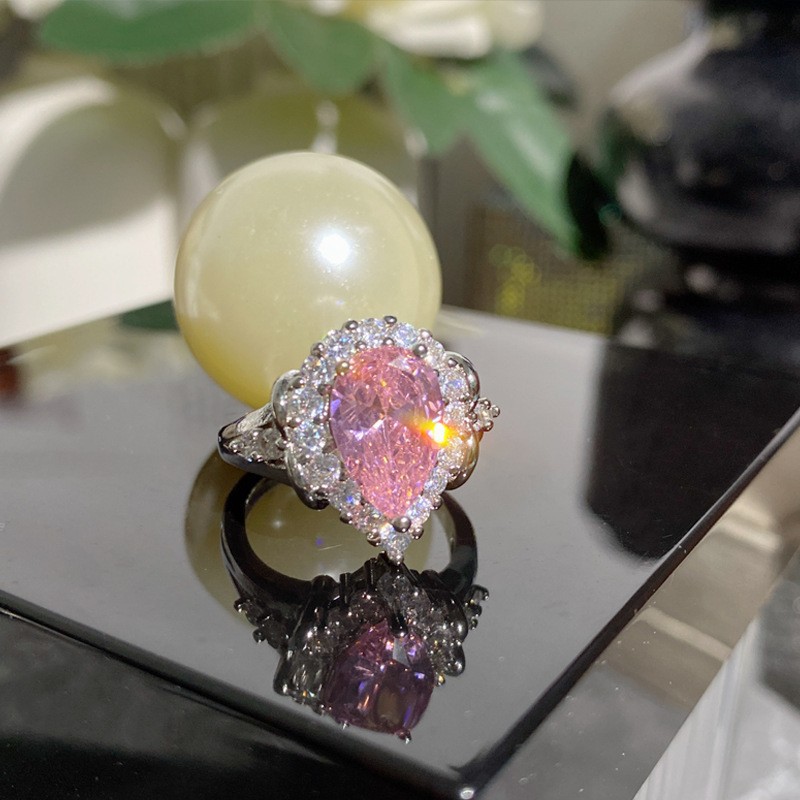 Color: Water drop rectangular ring [water drop stone pink diamond]