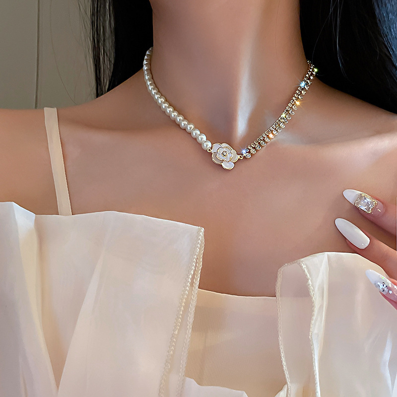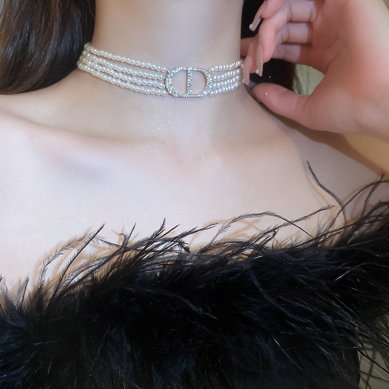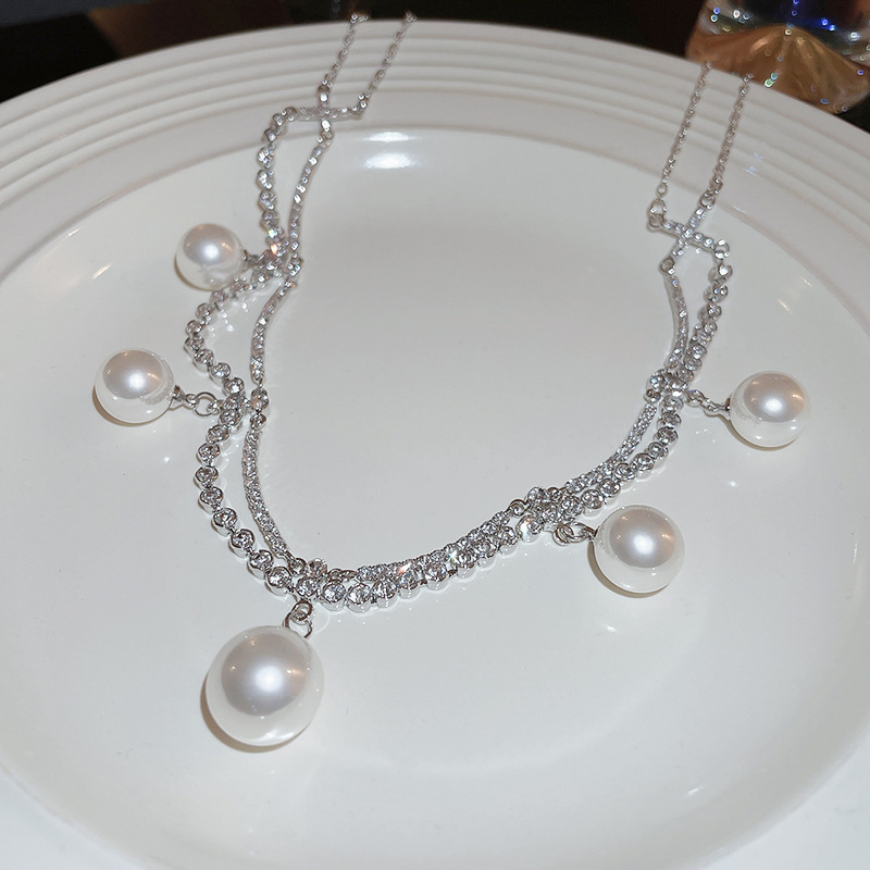 French Style Light Luxury Diamond-encrusted Butterfly Pearl Necklace Women's Niche All-match Collarbone Chain Fashionable Elegant High-end Jewelry