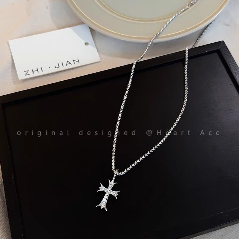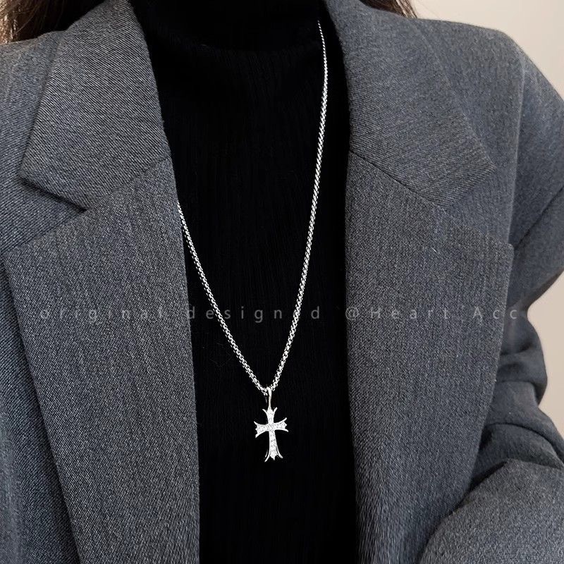 Cross Hip Hop Long Necklace Female Niche Design Sense Color-free Accessories Street Sweater Chain Sweater Chain Men's