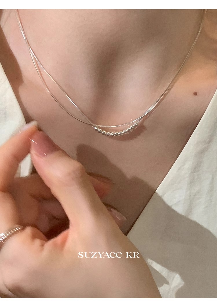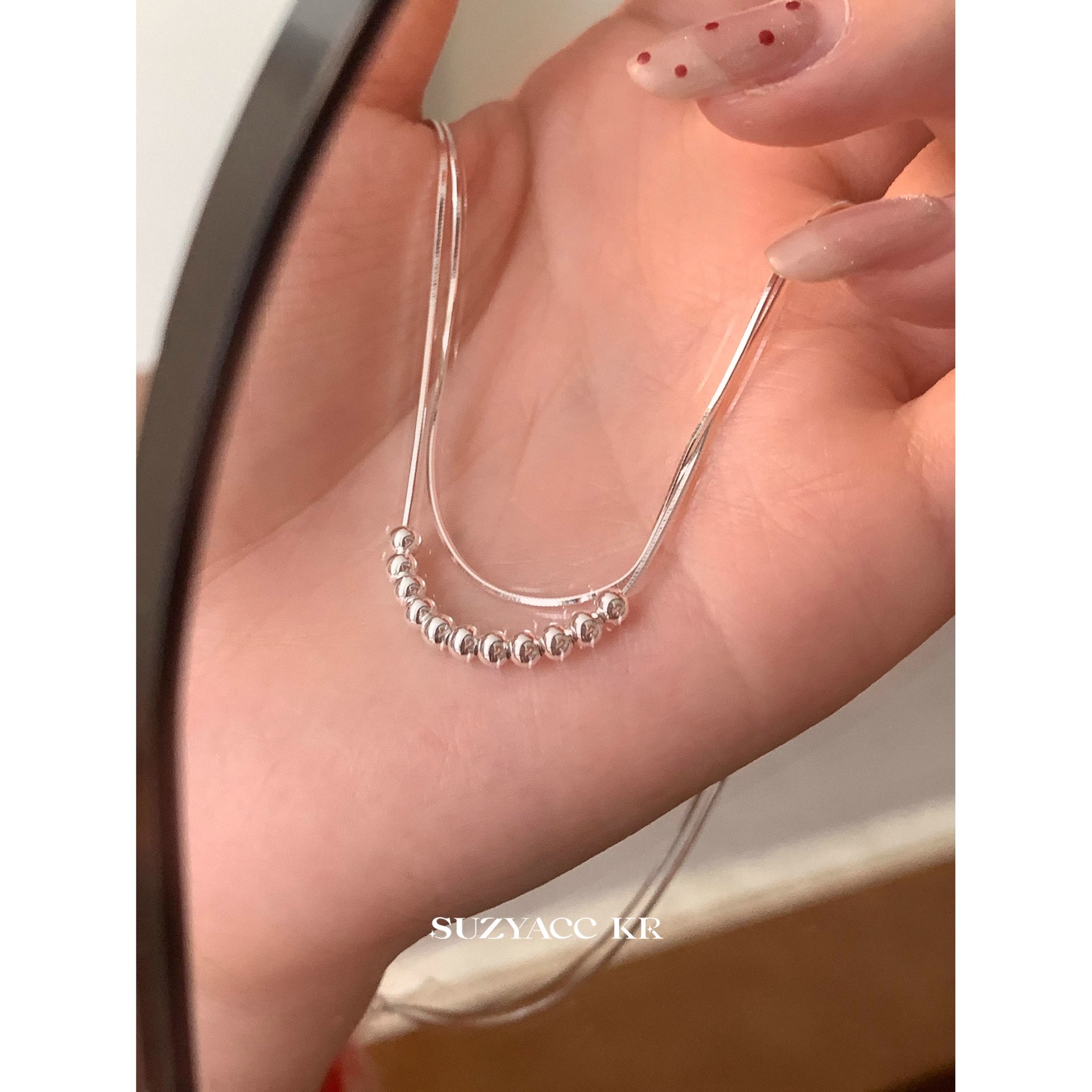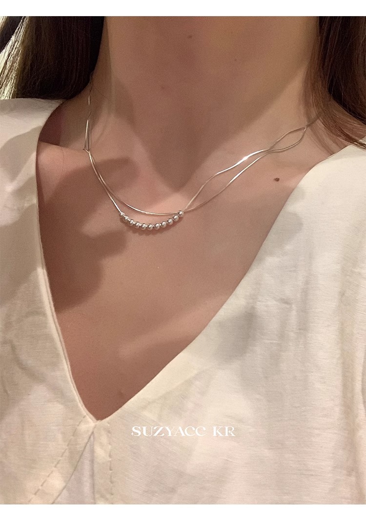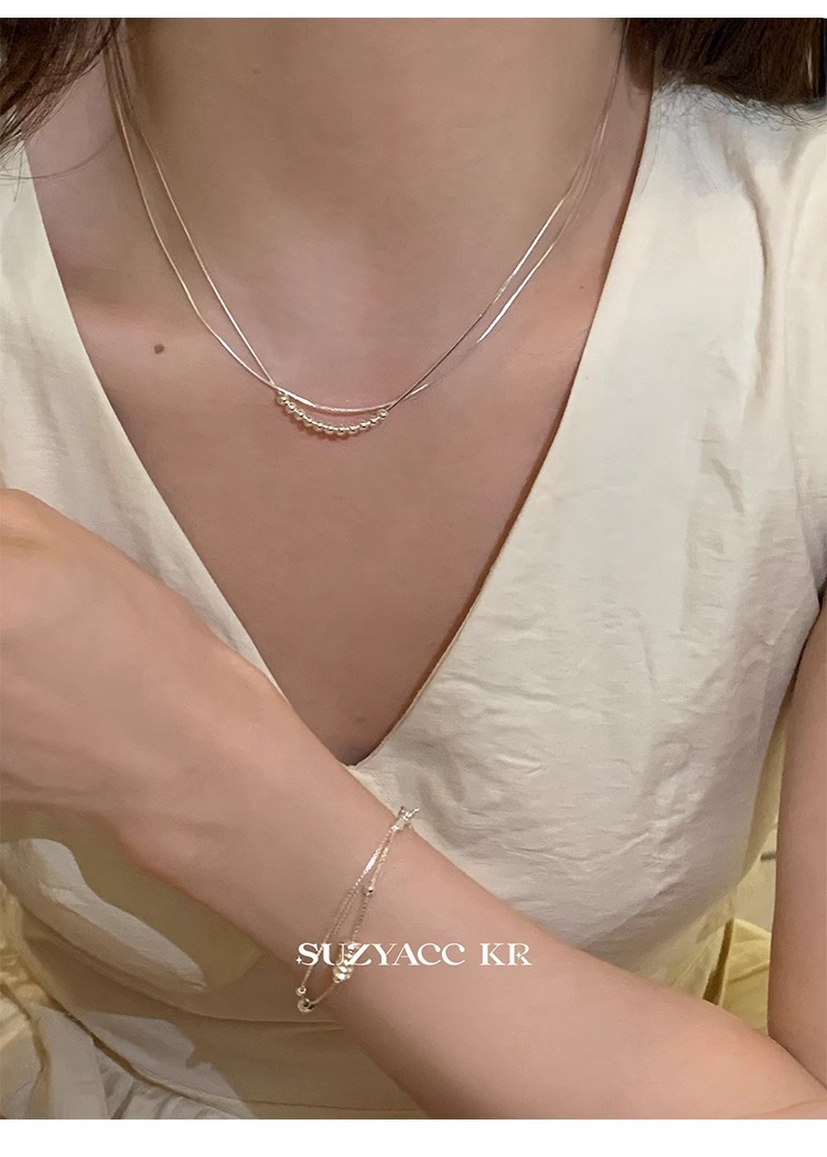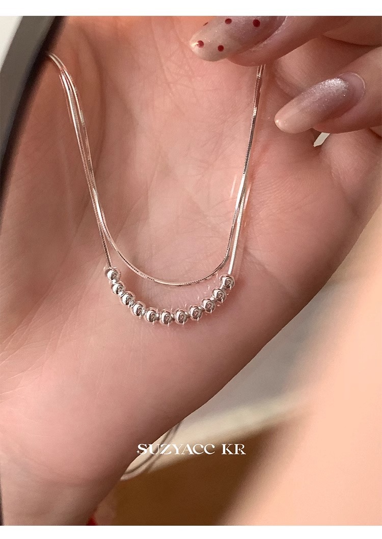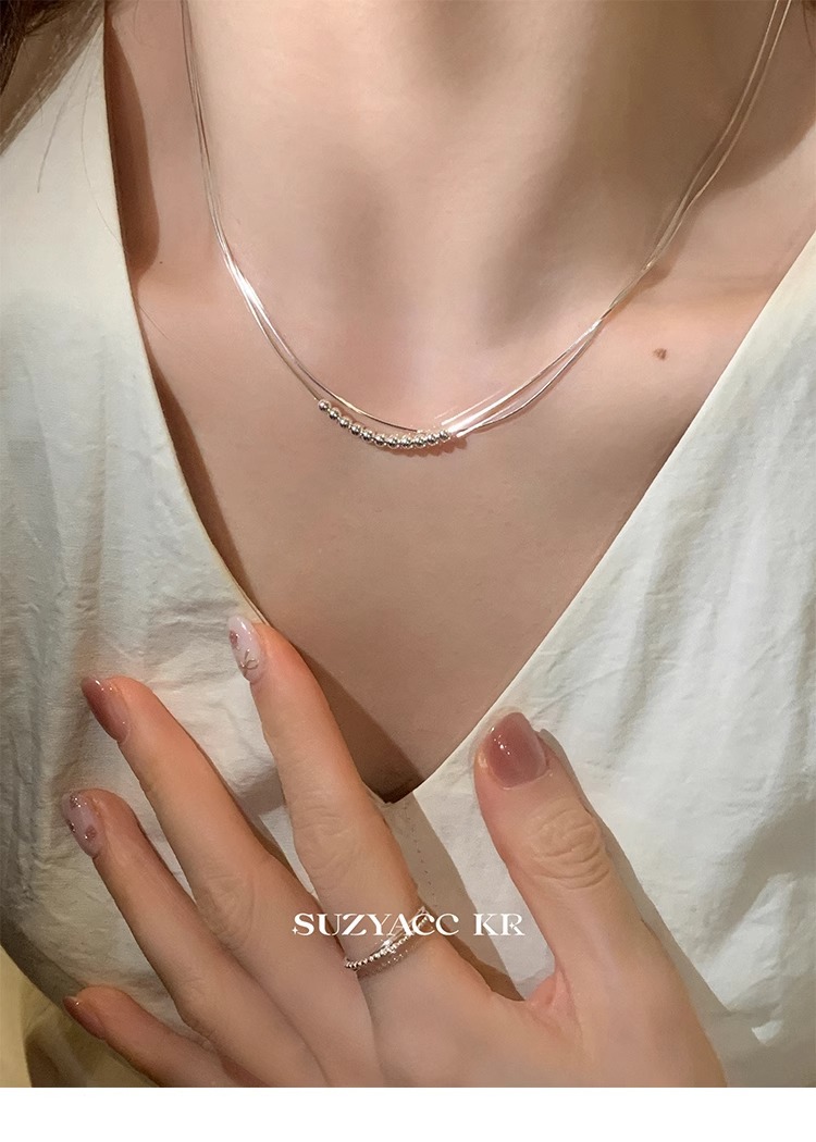 French Style Exquisite Simple Double Layer Silver Bead Necklace Women's Niche Light Luxury Overlapping Wearing All-match Design Sense Collarbone Chain Accessories