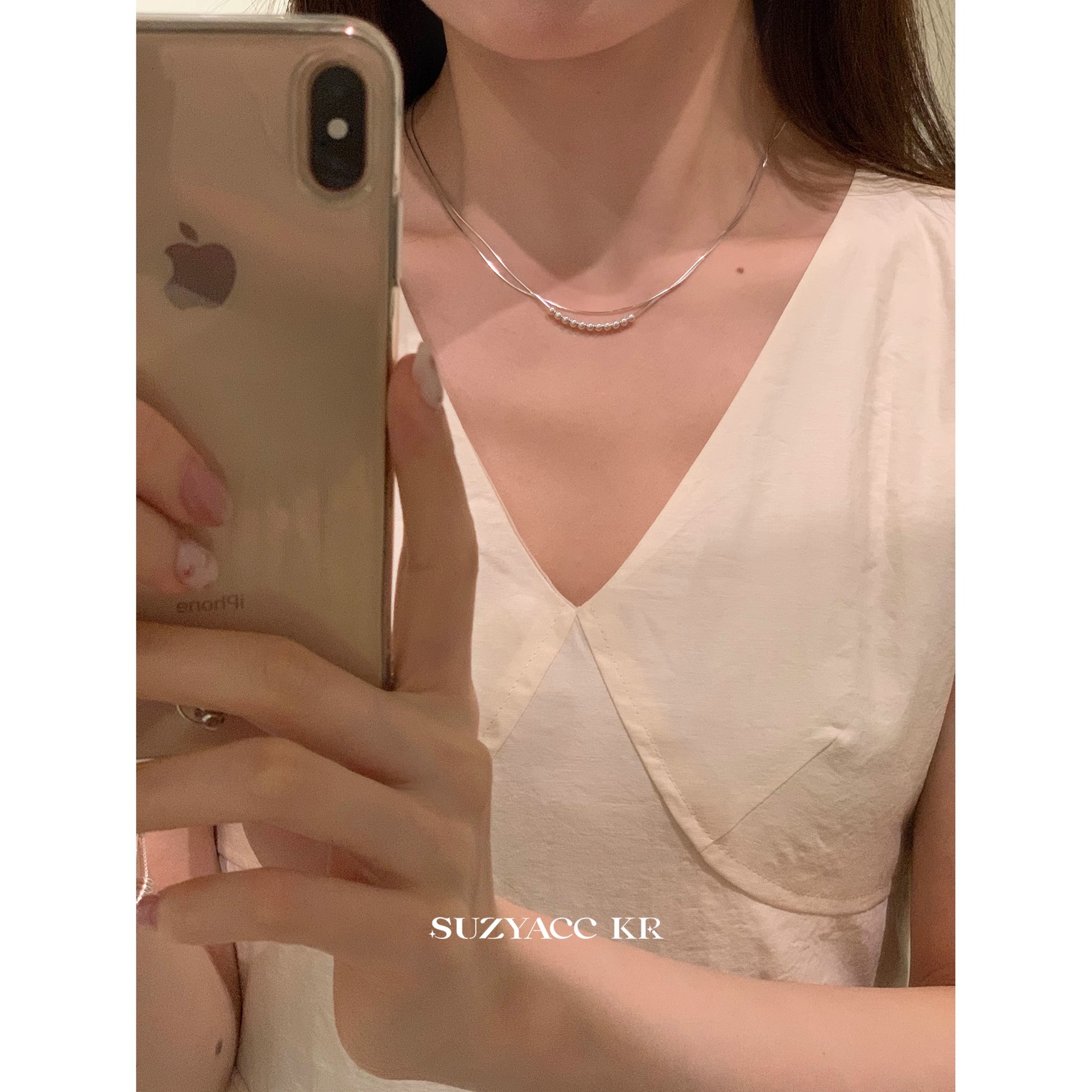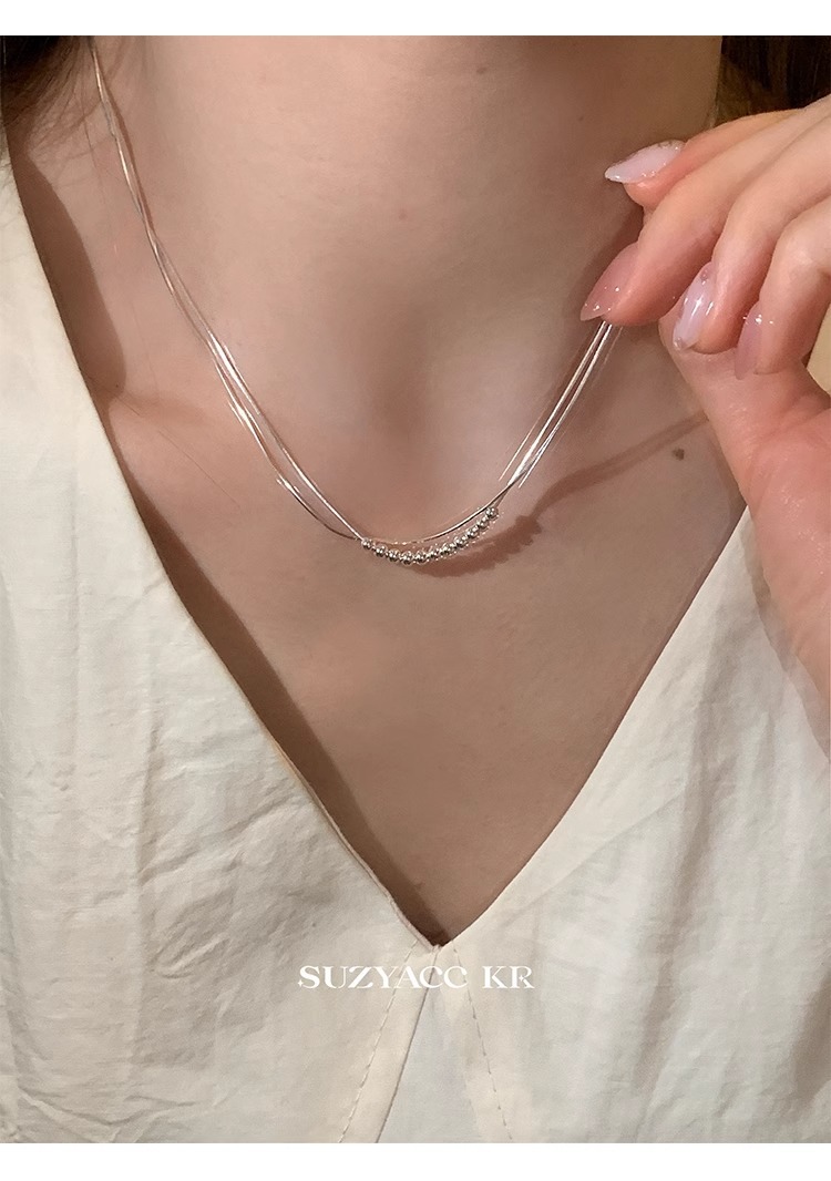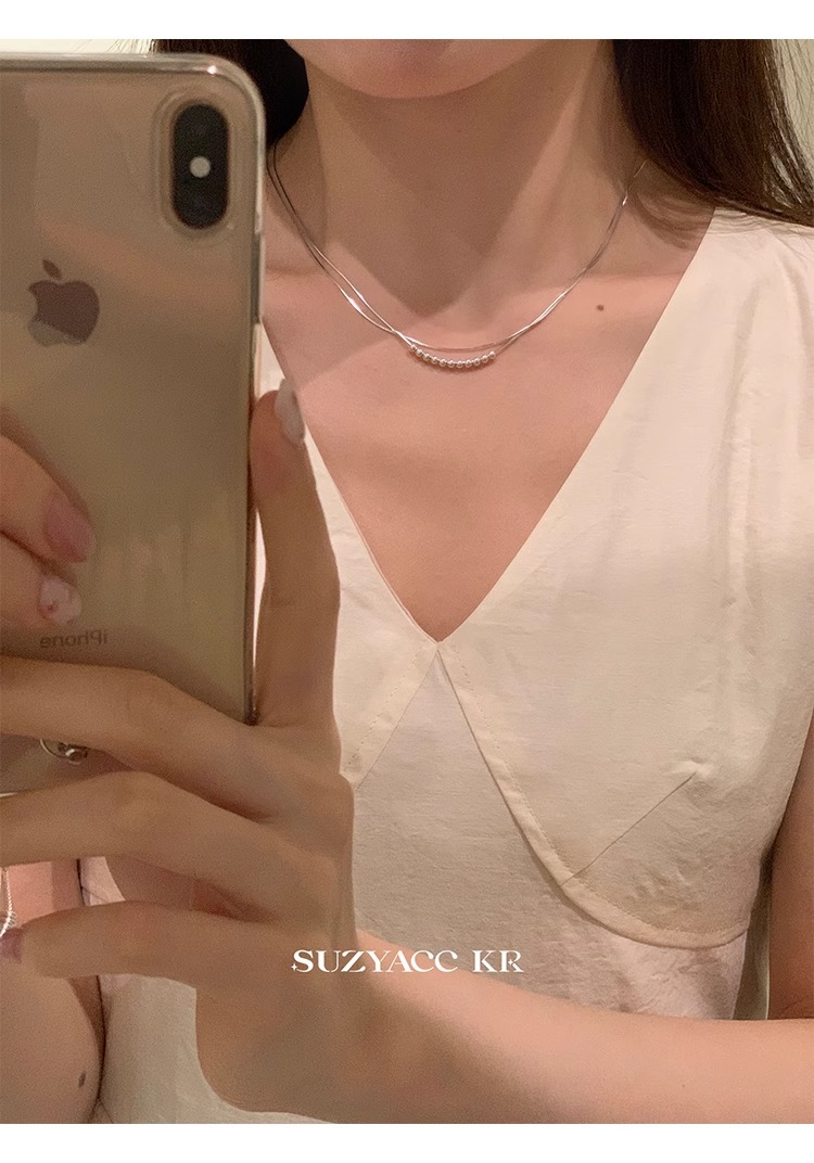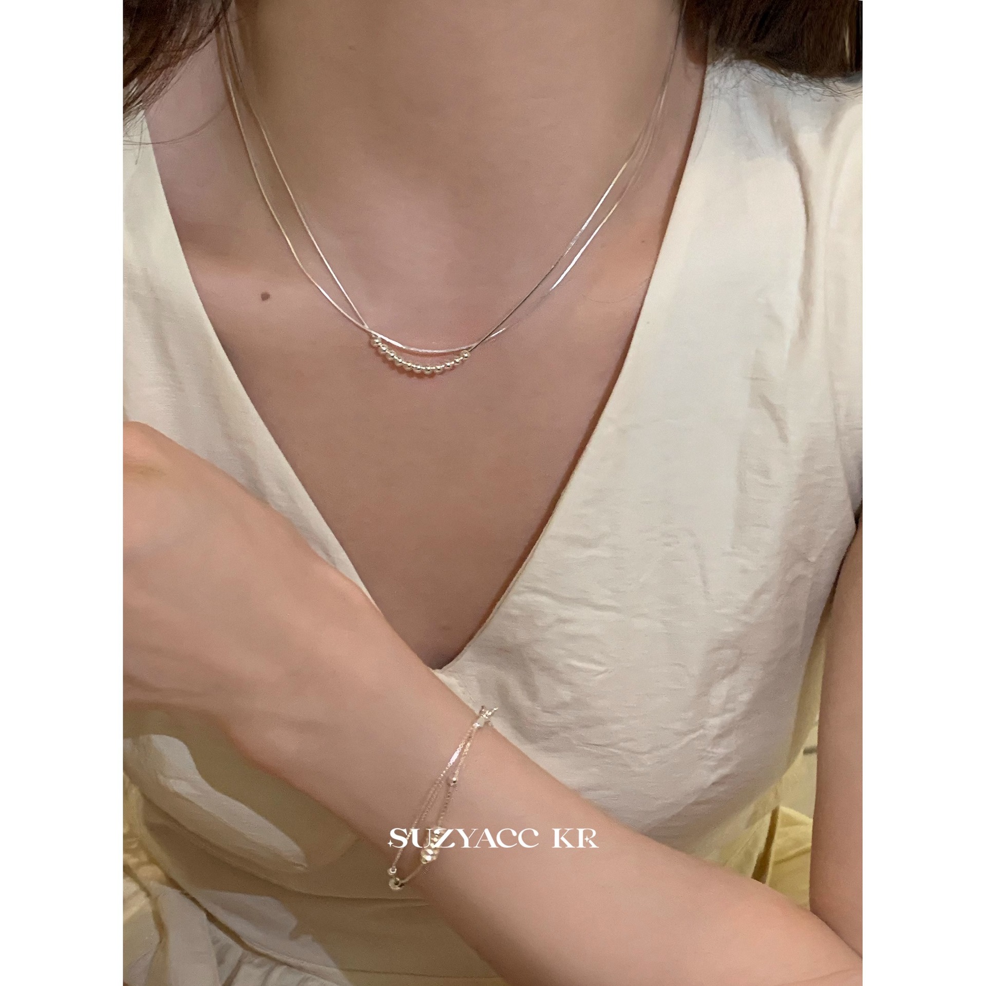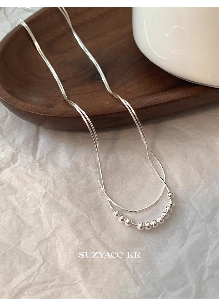 French Style Exquisite Simple Double Layer Silver Bead Necklace Women's Niche Light Luxury Overlapping Wearing All-match Design Sense Collarbone Chain Accessories