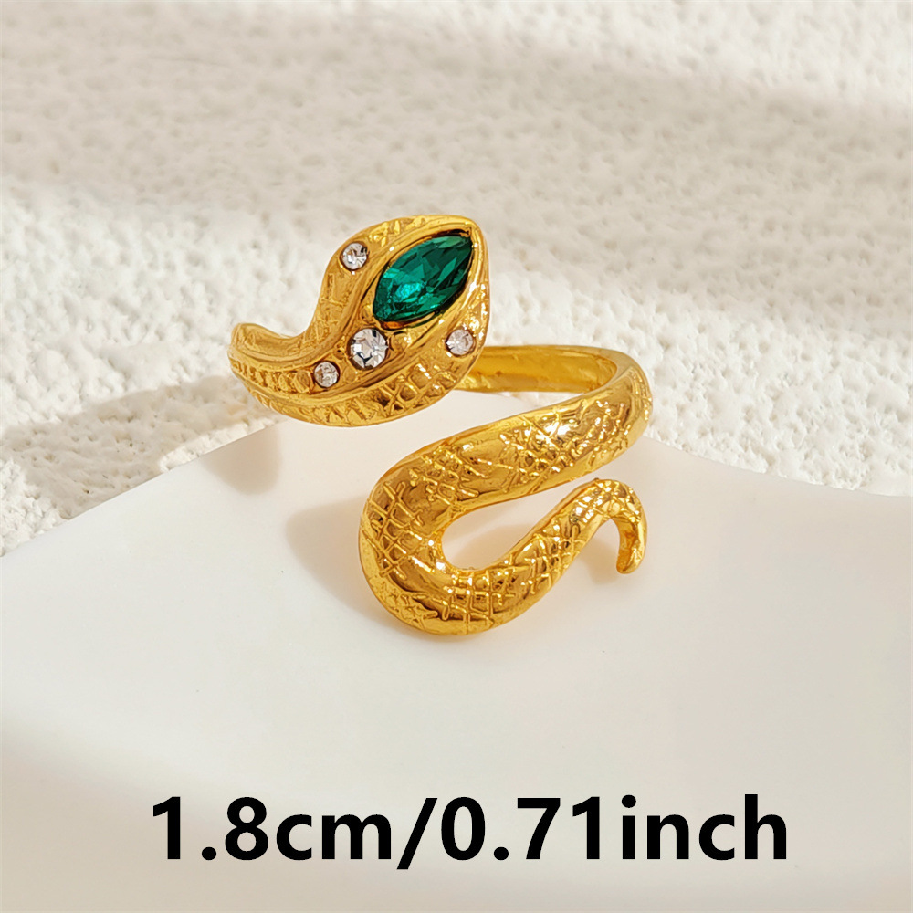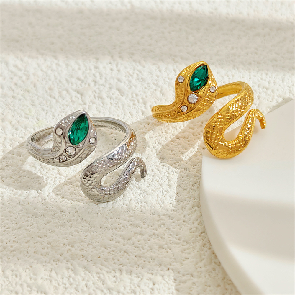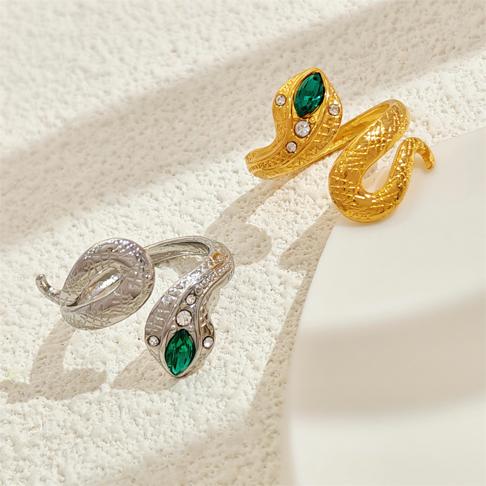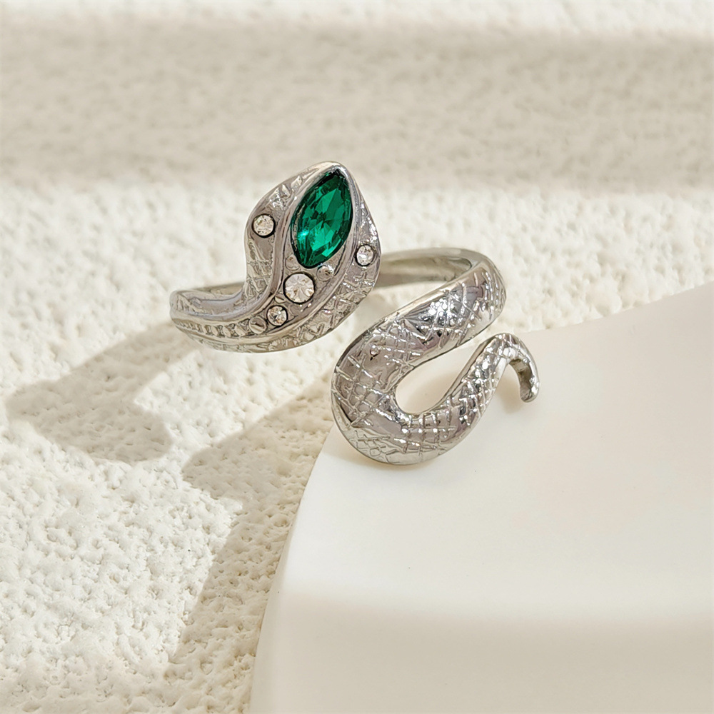 Fashion Green Diamond Snake Ring Trendy Design Personalized Hip Hop Live Ring Stainless Steel All-match Niche Ring for Women