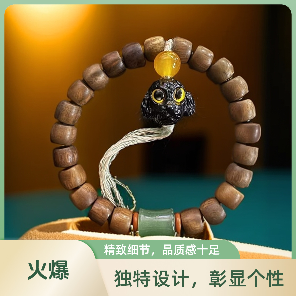 Argentinian Green Sandalwood Personalized Prosperous Dog Bracelet Cultural and Creative Buddha Beads Bracelet Gift Source Factory Wholesale Beads