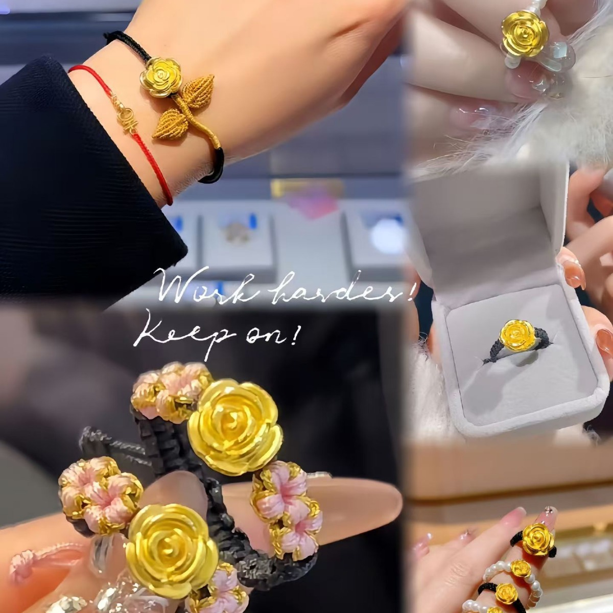 Color: Rose ring (red rope, snake knot push-pull style)