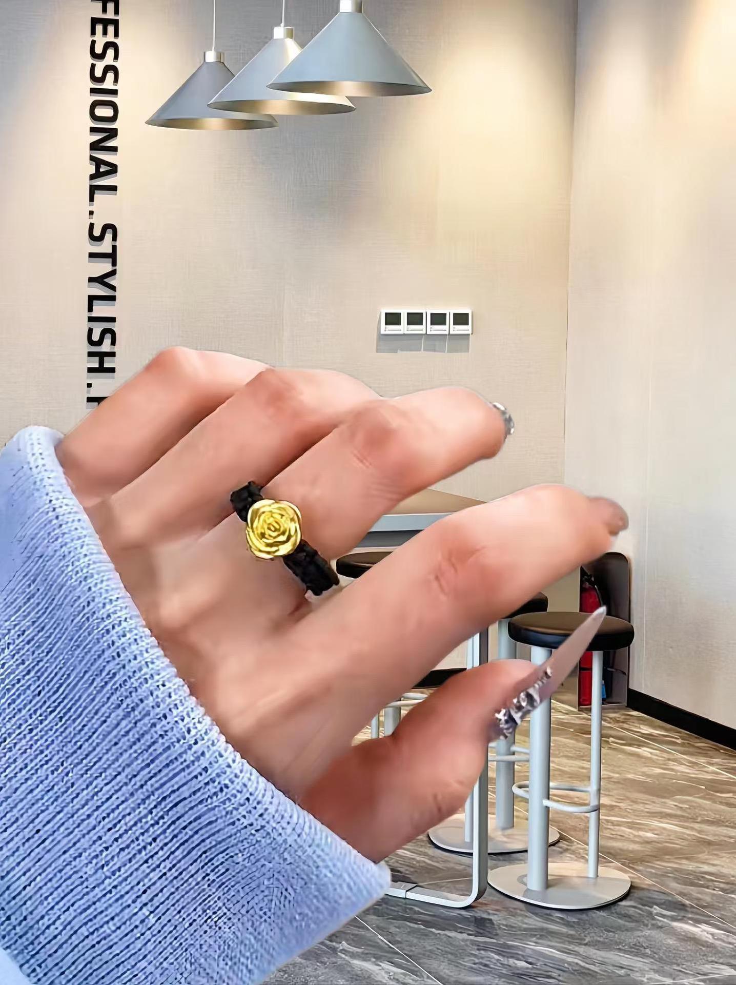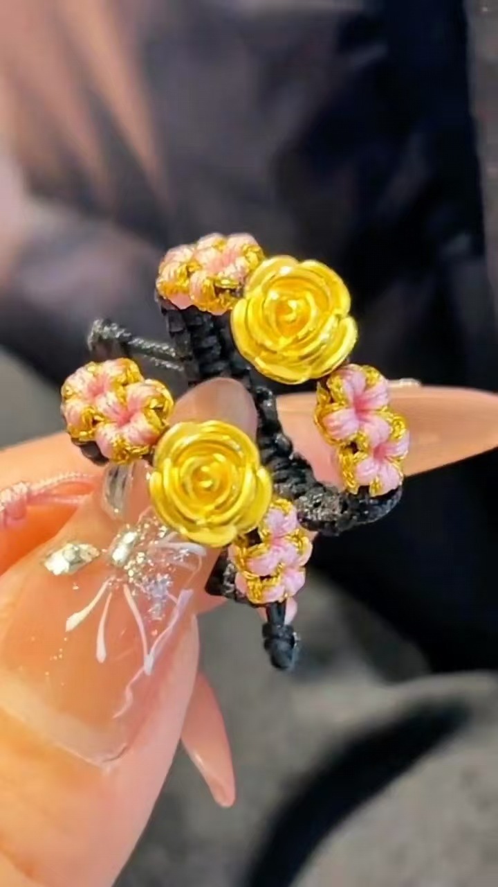 Color: Rose ring (black rope, snake knot push-pull style)